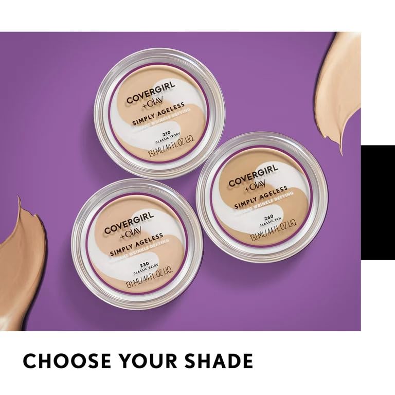 COVERGIRL Simply Ageless Instant Wrinkle Defying Foundation, SPF 28, Hyaluronic Complex & Vitamin C - 245 Warm Beige, Pack of 1