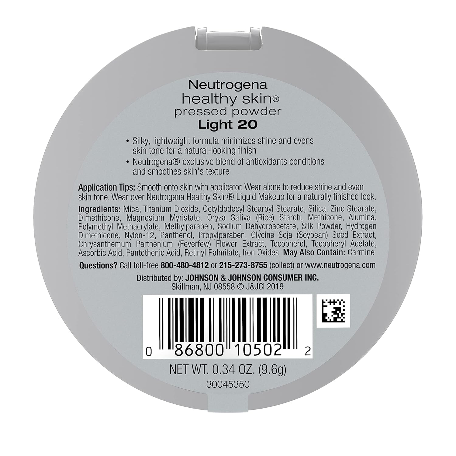 - Neutrogena Healthy Skin Pressed Makeup Powder Compact helps even skin tone & condition skinVelvety, silky pressed makeup powder is lightweight and helps create smooth skin texture for a natural looking, flawless matte finishThe formula minimizes shine and helps create smooth skin texture. It is made with antioxidants, pro vitamin B5 & vitamins C & E to condition and smooth skinThe makeup powder contains light diffusers, helping soften the look of fine lines, blemishes and imperfectionsIt leaves skin looking fresh all day long