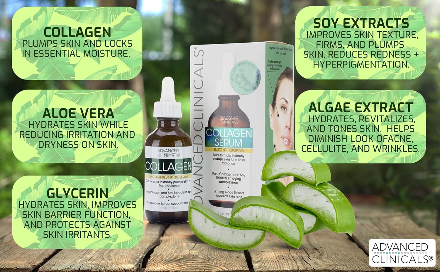 - COLLAGEN SERUM β Collagen is a protein found naturally in our skin, bones, & connective tissue, and it plays a crucial role in maintaining our skin's structure, elasticity & firmness. As we age, our body's natural collagen production declines, which can lead to the appearance of fine lines, wrinkles, & sagging skin. Advanced Clinicals Collagen Serum for face helps boost skin elasticity, restore collagen within your skin, and hydrate + nourish your skin, leaving it feeling more soft, supple, & ra