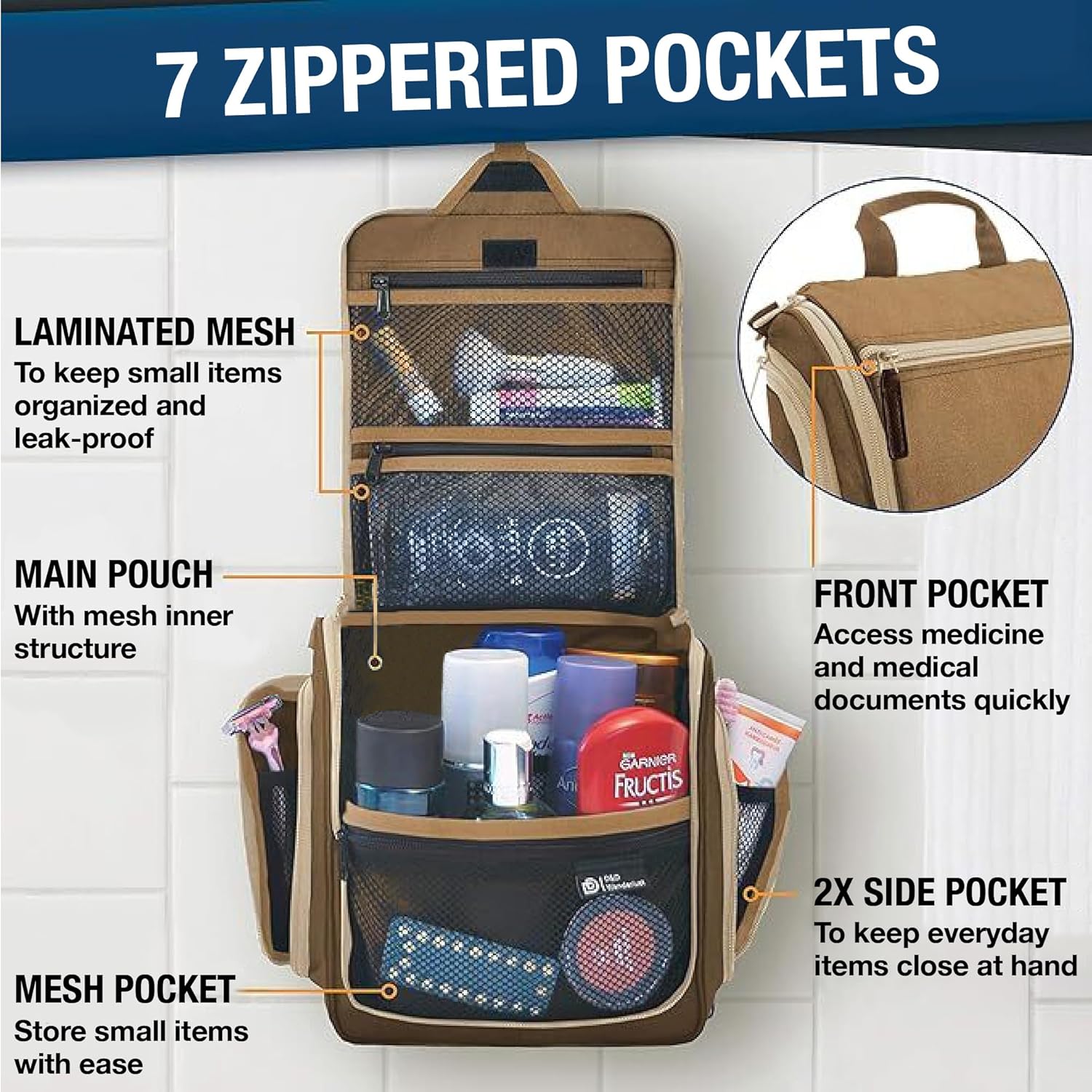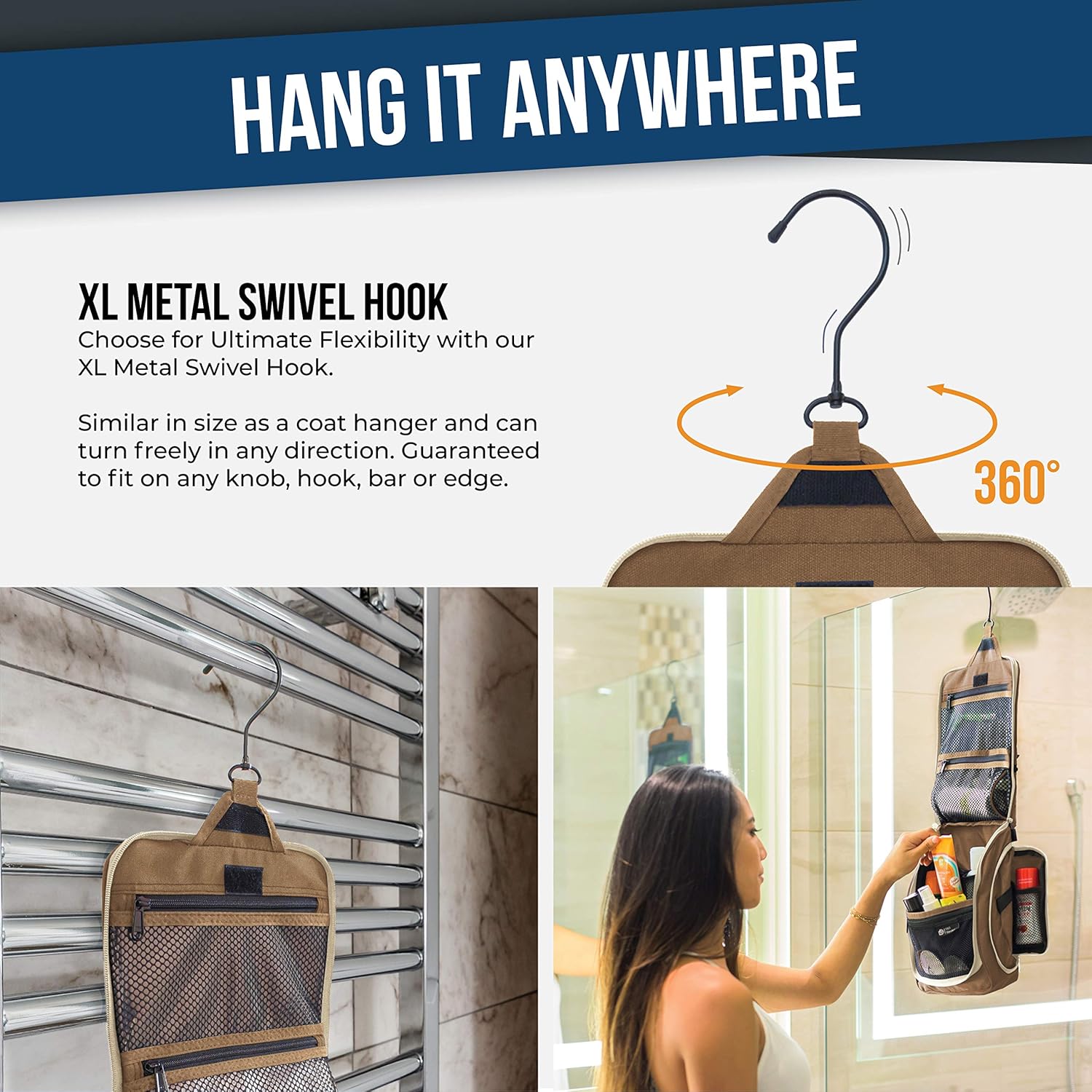 - Convenient Hanging Hook: The XXL metal swivel hook allows you to hang the bag anywhere, saving valuable counter space. It's perfect for use in hotels, bathrooms, or even on a camping trip.