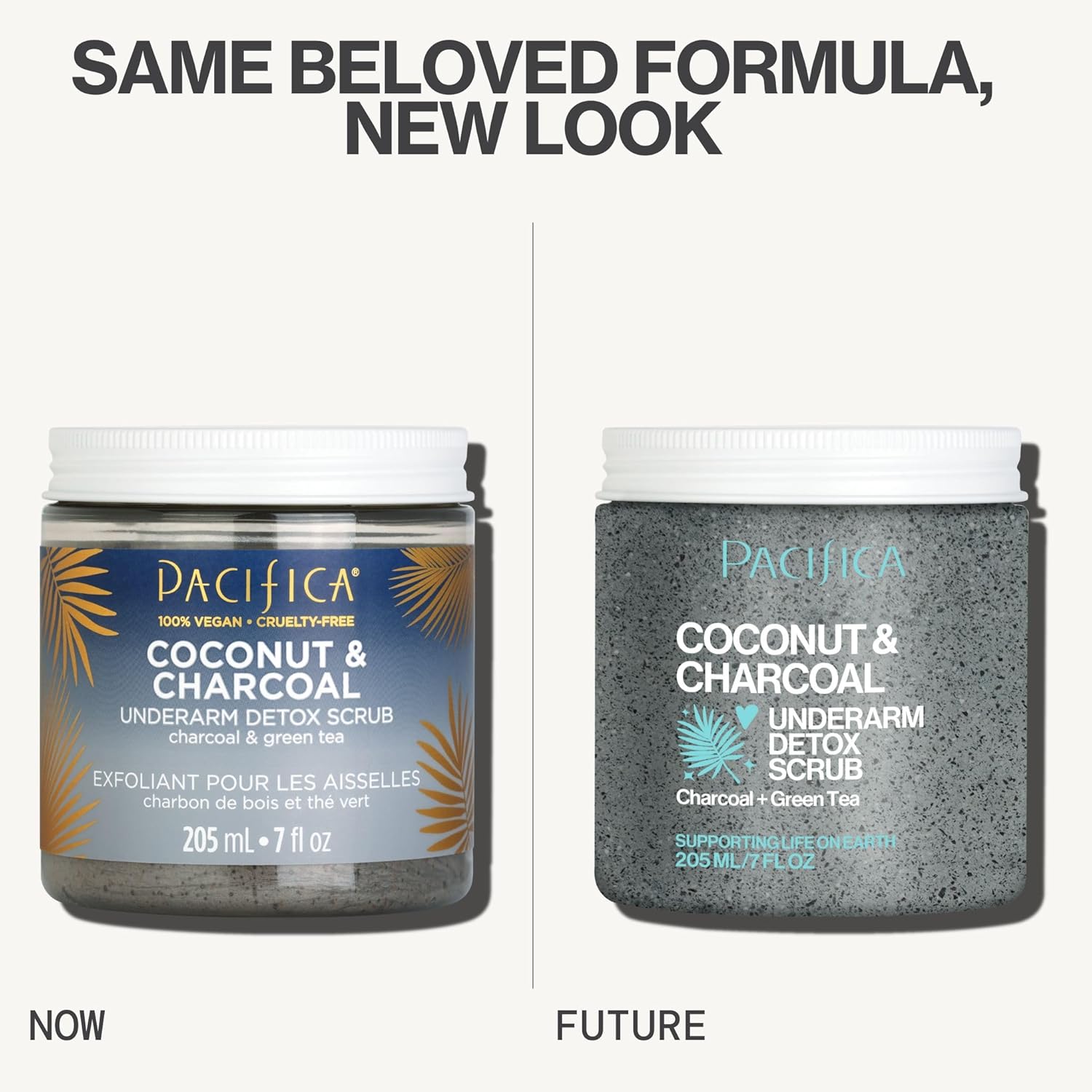 - CLEAN, VEGAN & CRUELTY-FREE – Pacifica’s Coconut & Charcoal Armpit Detox Scrub is made with 100% vegan, cruelty-free, and skin-safe ingredients—no aluminum, parabens, sulfates, phthalates, or talc. This natural underarm exfoliator cleanses, detoxifies, and preps skin without harsh chemicals, making it ideal for women, men, and teens. Love your underarms and the planet with this eco-friendly skincare essential, housed in a recyclable jar made from post-consumer materials. Enjoy fresher, smoother underarms while embracing sustainable, clean beauty with every use.