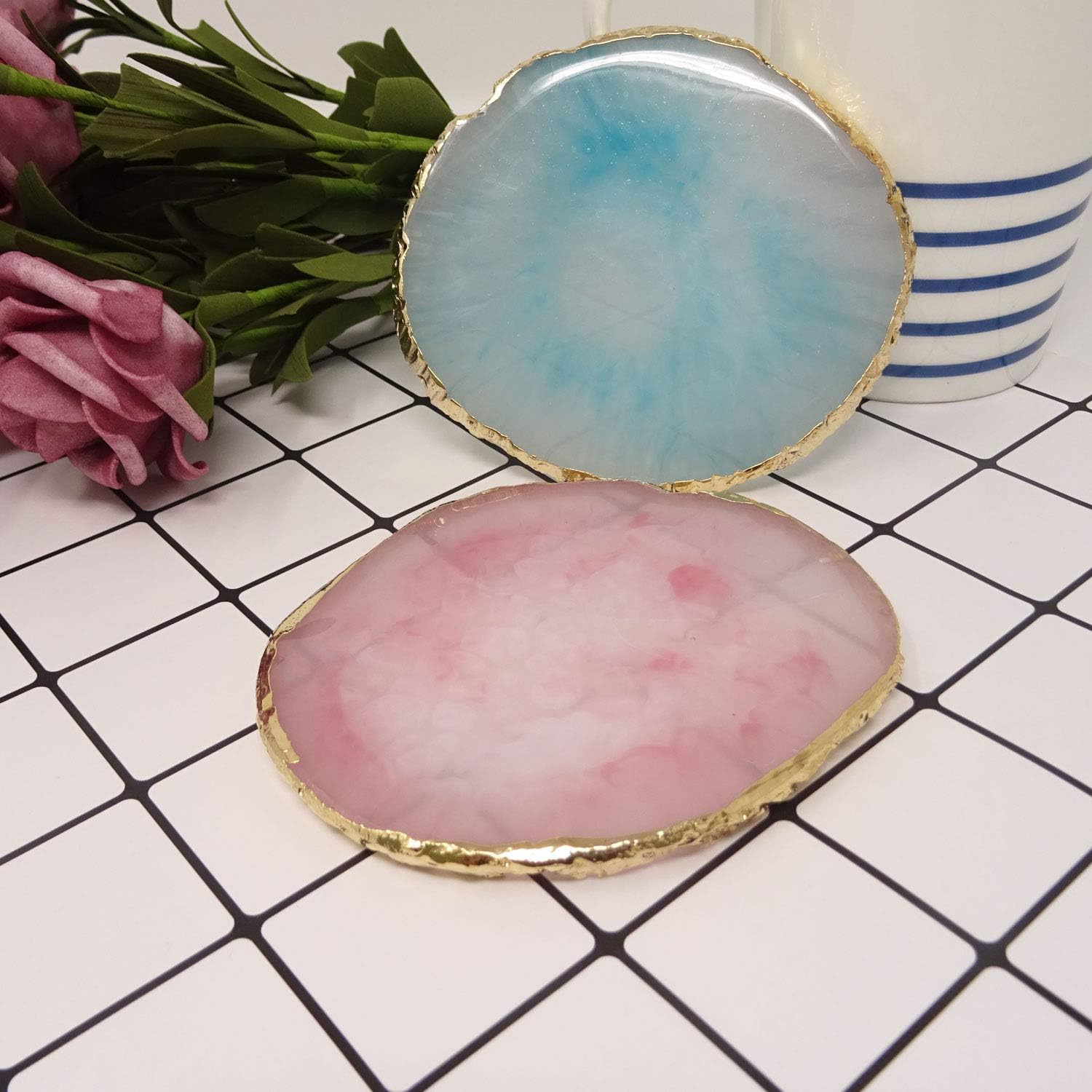 Honbay 2PCS Golden Edge Resin Nail Art Palettes Drawing Plates Manicure Display Tools for Women