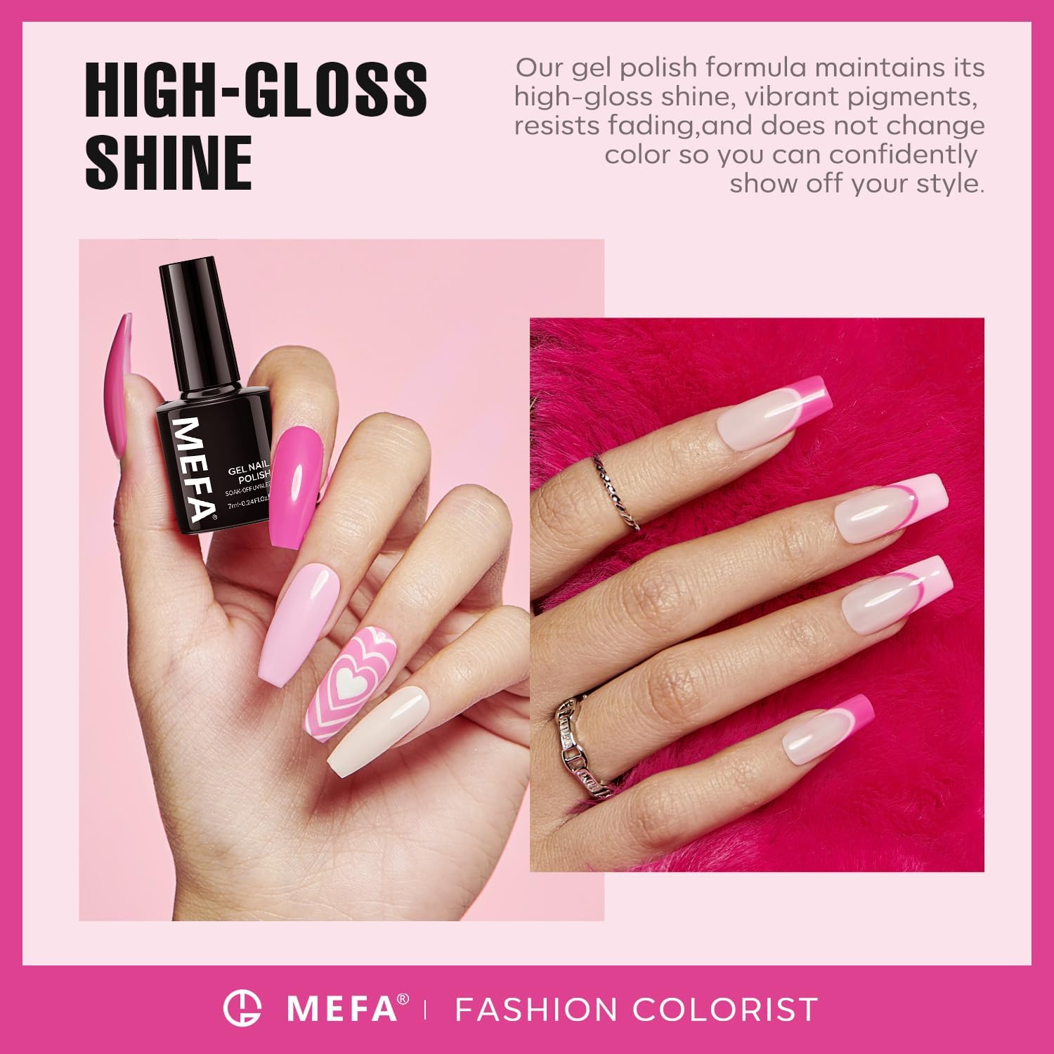 MEFA Pink Gel Nail Polish Set 6 Colors, Hot Pink Shades Spring Neon Light Bright Magenta Electric Tones Craze Nail Art Design at Home DIY Decorations Manicure Kit Gifts for Women