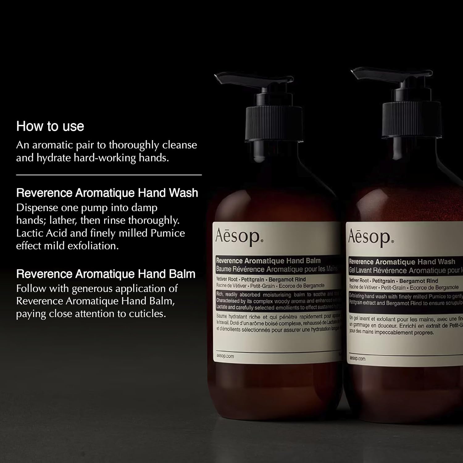 Aesop Reverence Aromatique Duet | Skin Softening Hand Wash & Hand Balm | Woody, Earthy, Smoky | Vetiver Root, Petitgrain, Bergamot Rind | 16.9 oz / 500 mL