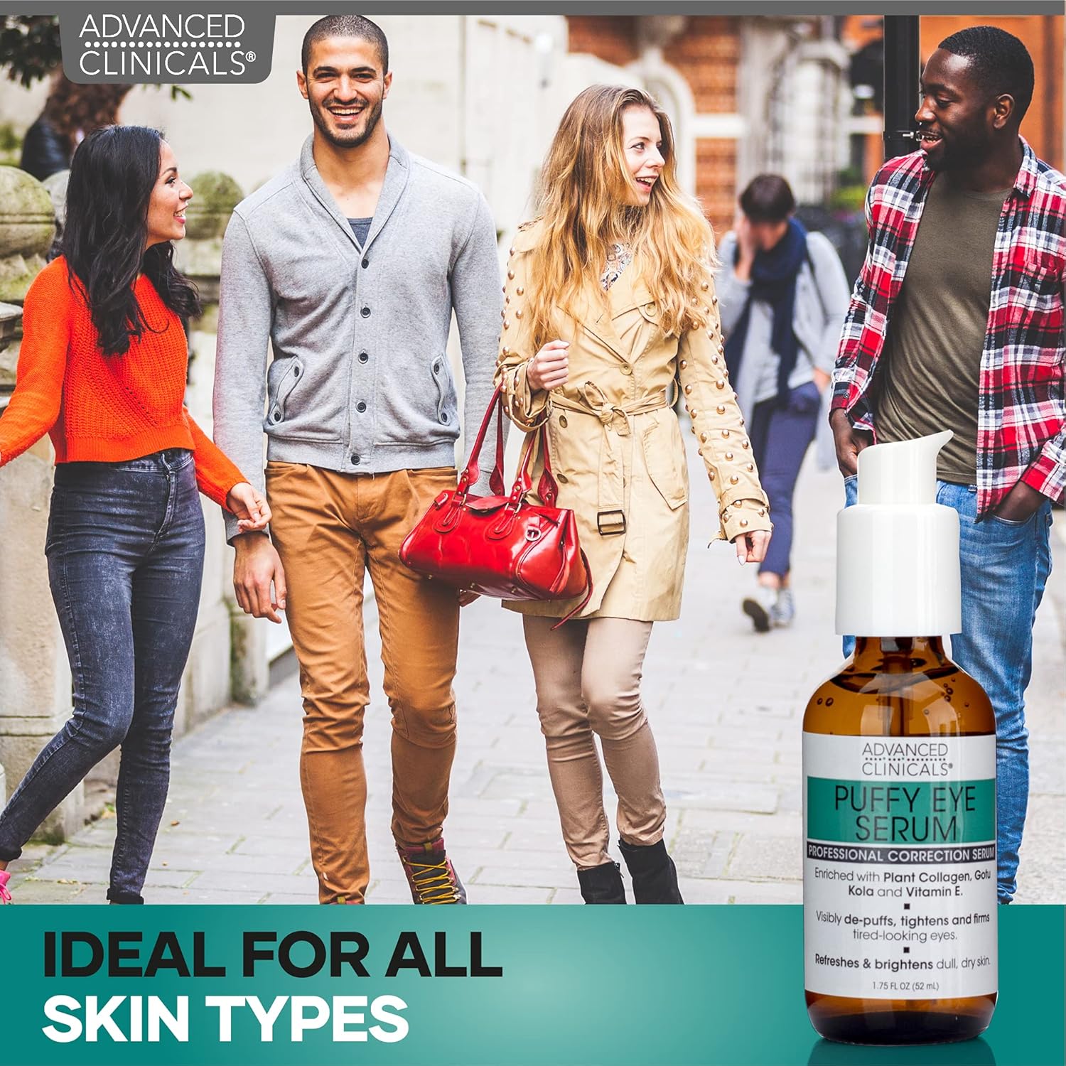 Advanced Clinicals Puffy Under Eye Face Serum Anti Aging, Brightening, & Firming Serum W/Vitamin E, Collagen, Gotu Kola, Caffeine, & Green Tea Helps Hydrate & Calm Puffiness, 1.75 Fl Oz