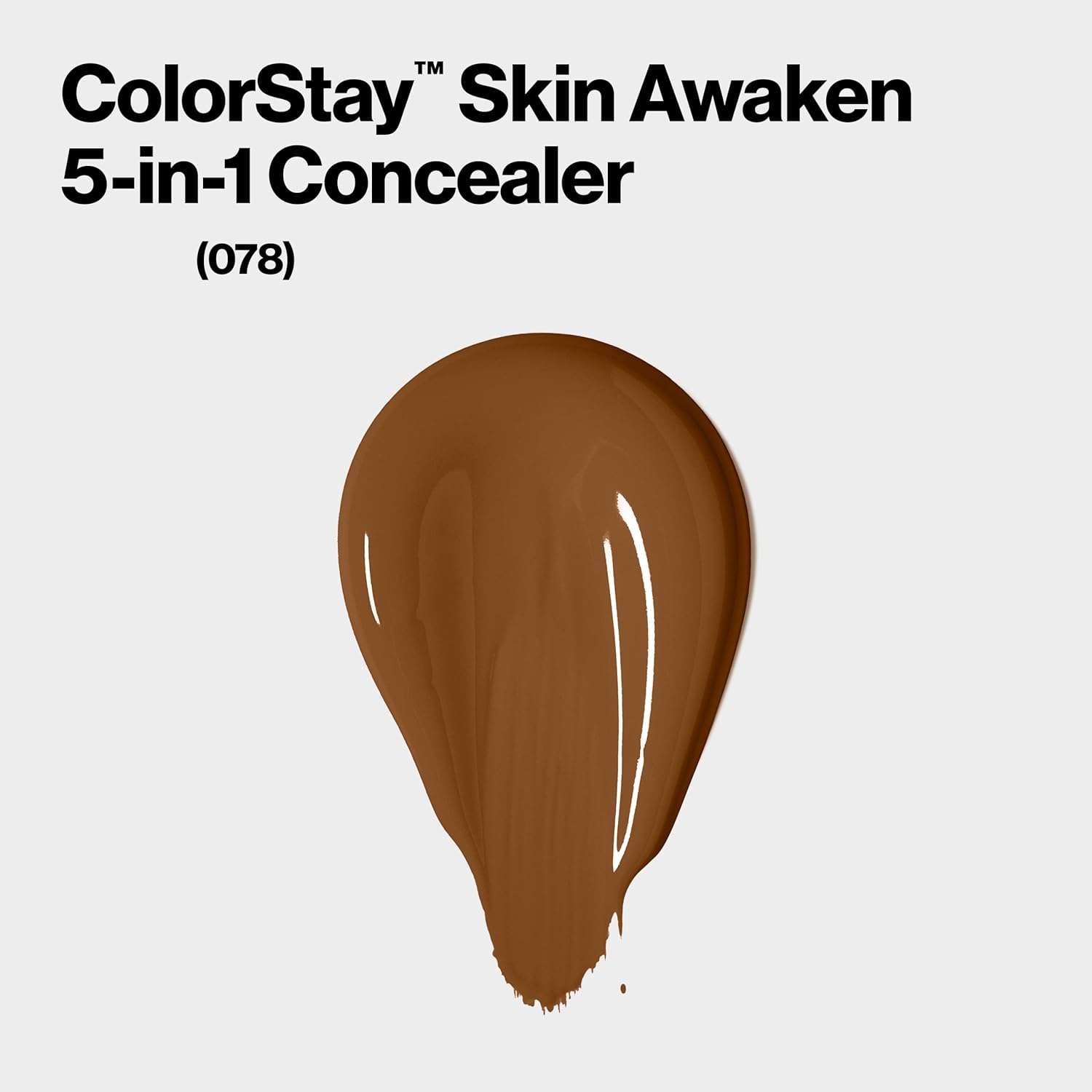 Revlon ColorStay Skin Awaken 5-in-1 Concealer, Lightweight, Creamy Longlasting Face Makeup with Caffeine & Vitamin C, For Imperfections, Dark Circles & Redness, 078 Truffle, 0.27 fl oz
