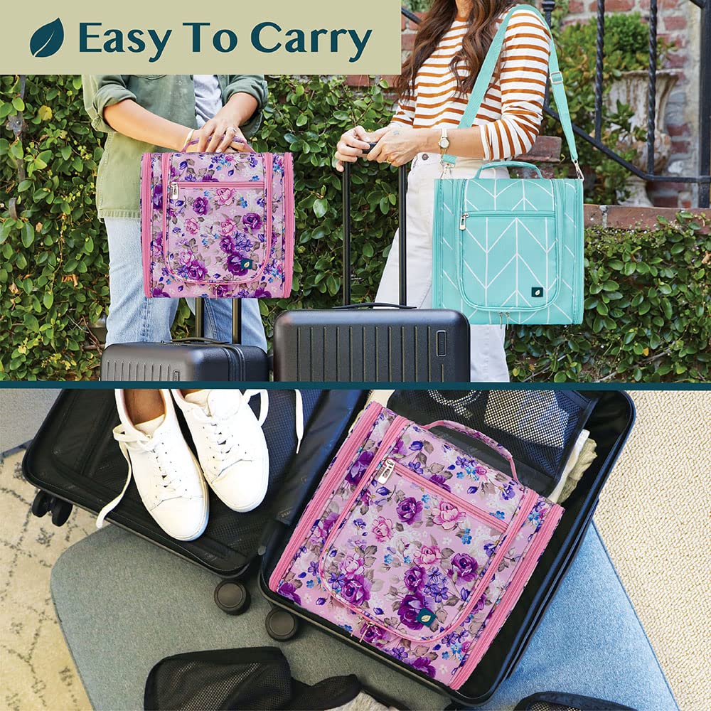 PAVILIA Extra Large Toiletry Bag Travel Bag for Women Men, Hanging Cosmetic Organizer, Water Resistant Makeup Bag for Accessories Toiletries, Travel Essentials Kit (Floral Pink)
