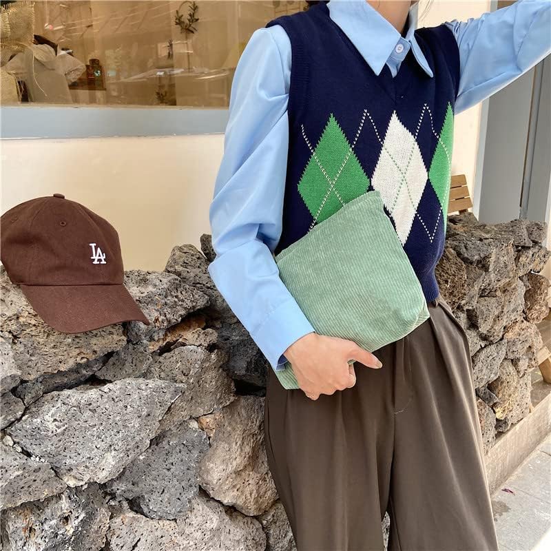 PAZIMIIK Makeup Bag Large Zipper Corduroy Make Up Pouch for Purse Travel Canvas Cosmetic Organizer for Women Brush Storage,Green