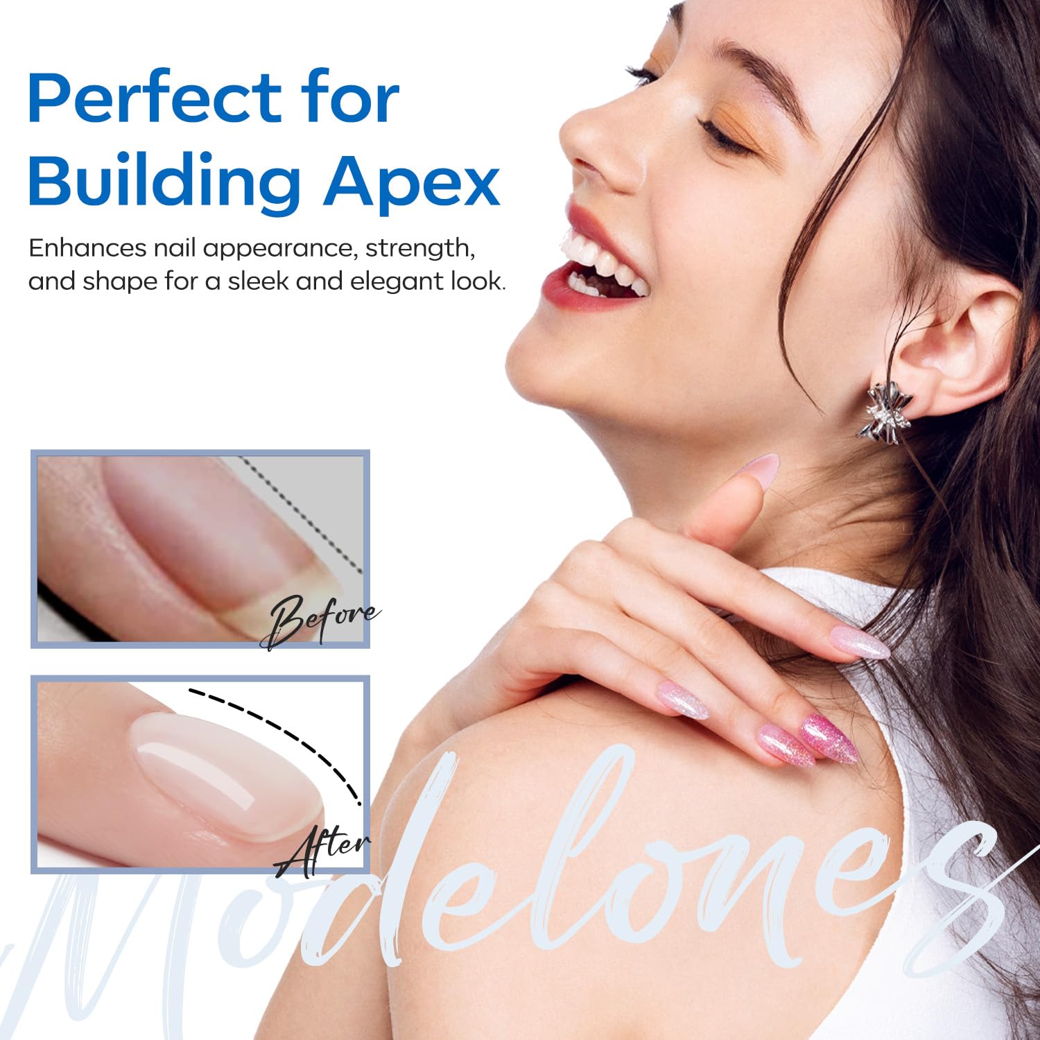 - ăHealthy FromulaăModelones rubber base builder gel Contains natural nano-plant resin, 11 toxin-free; No irritating ingredients, low odor, friendly to the nail bed; After 103 formulation stability tests, it provides a good foundation for its adhesive properties and enhances the durability of gel polish.