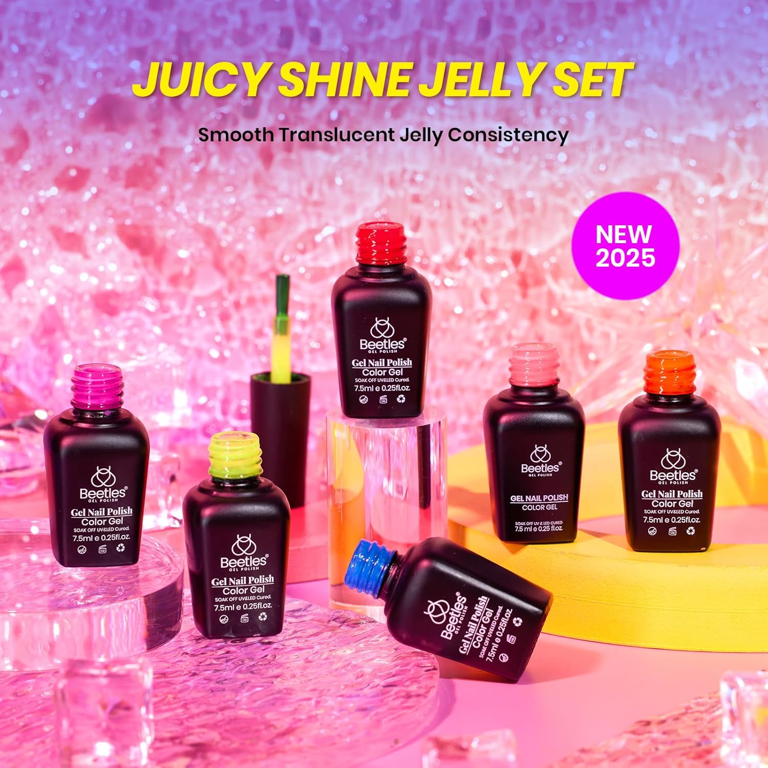 - 【Neon Jelly Gel Polish Set】6 Colors 7.5ml/0.25fl.oz Beetles jelly neon gel nail polish kit. You'll be dizzy with delight wearing this jelly gel polish kit. This sheer transparent neon color jelly gel can be used to create various nail styles, such as French nails and swirl nails, making it perfect for nail lovers with different skin tones. Color Number: c400 C401 C402 C403 C404 C405