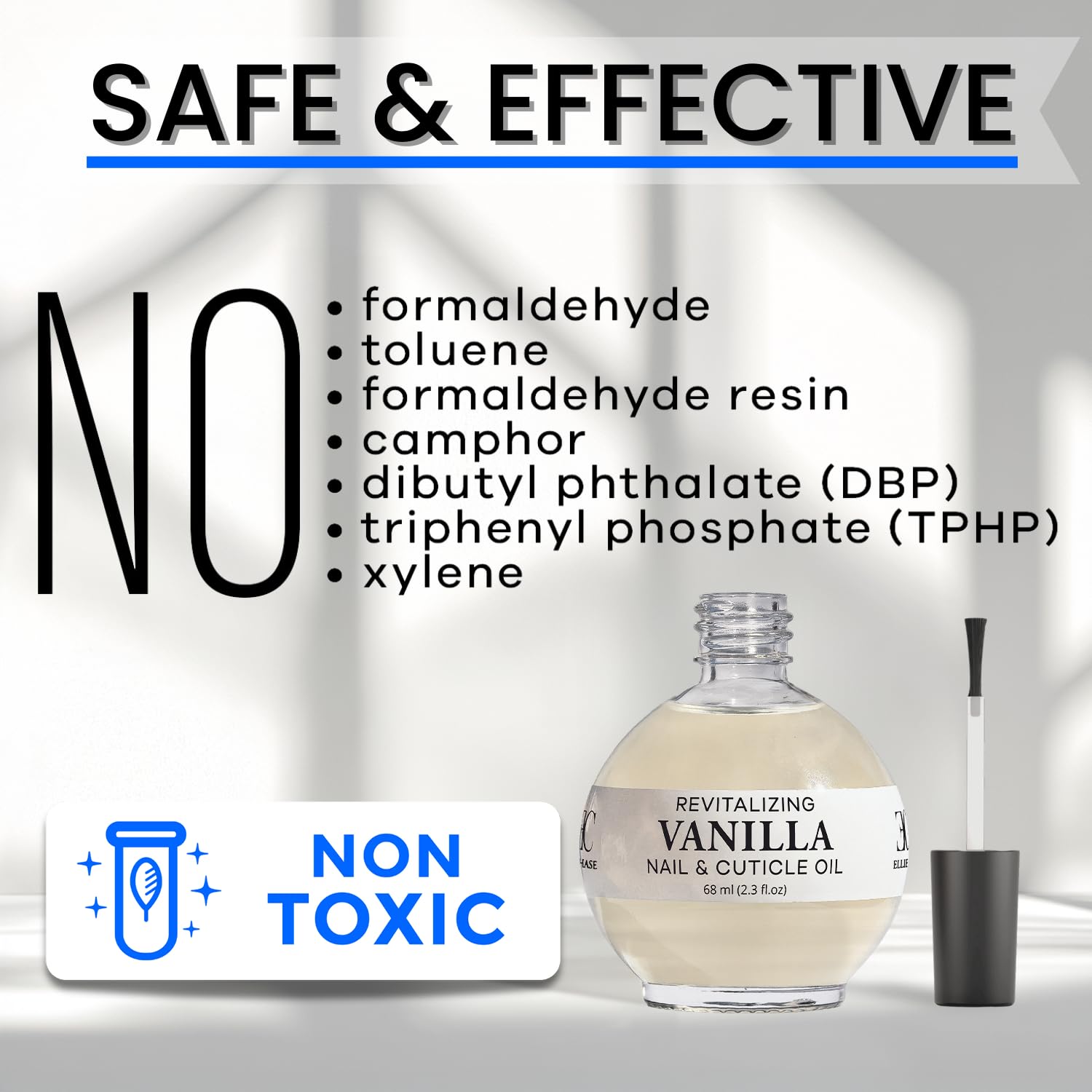 - Clear when applied 2.3 Fl Oz - Cruelty Free, Gluten Free, Non-Toxic, Organic, Vegan Friendly, No formaldehyde, toluene, DBP, TPHP, camphor, xylene
