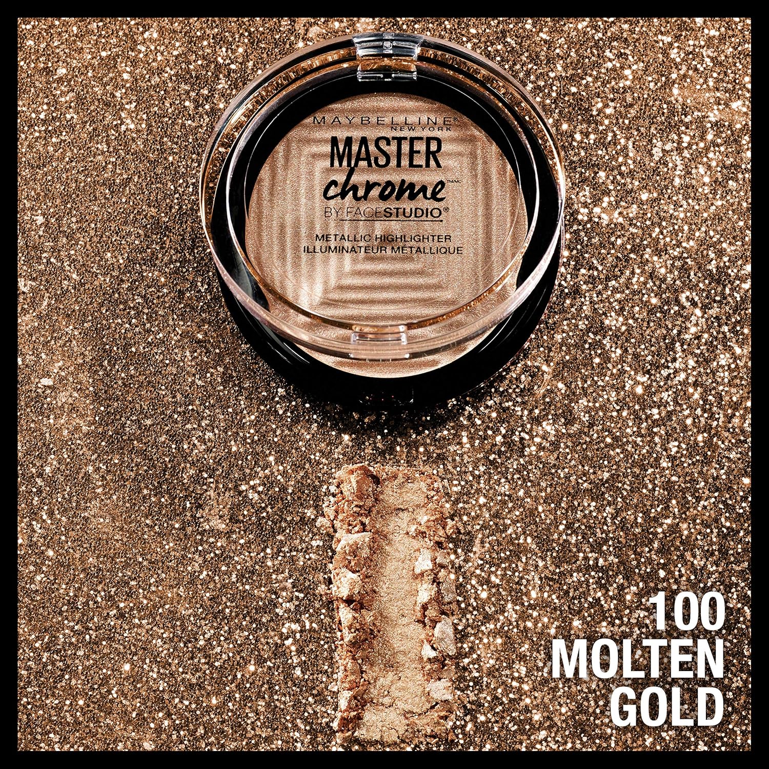 - Facestudio Master Chrome Metallic Highlighter Makeup: This highlighter powder drenches skin in a melted metallic finish; Maybelline's pearl pigments leave a reflective finish for a brilliant glowing skin