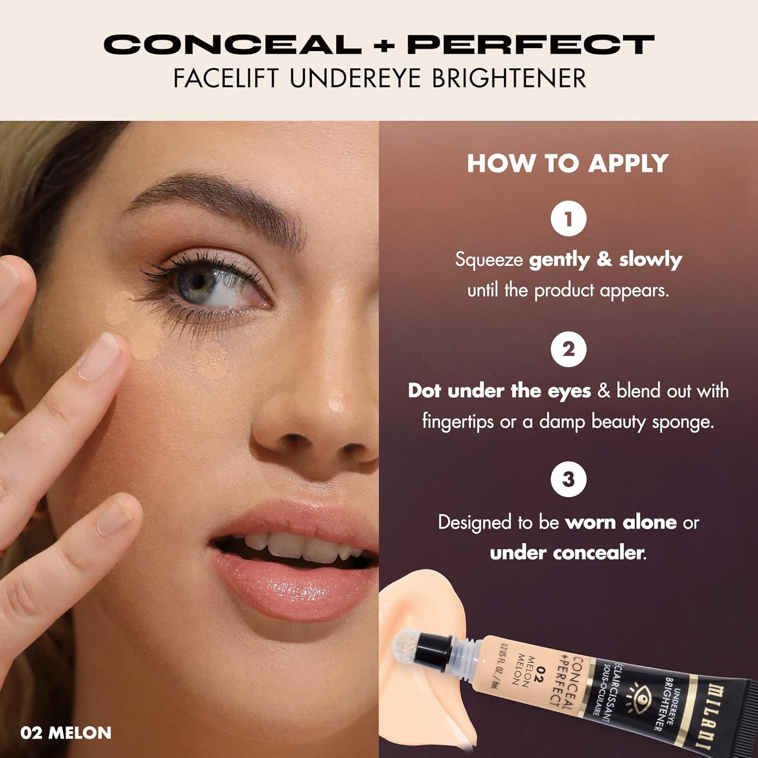Milani Conceal + Perfect Undereye Brightener for Treating Dark Circles, Face Lift Collection - Pumpkin