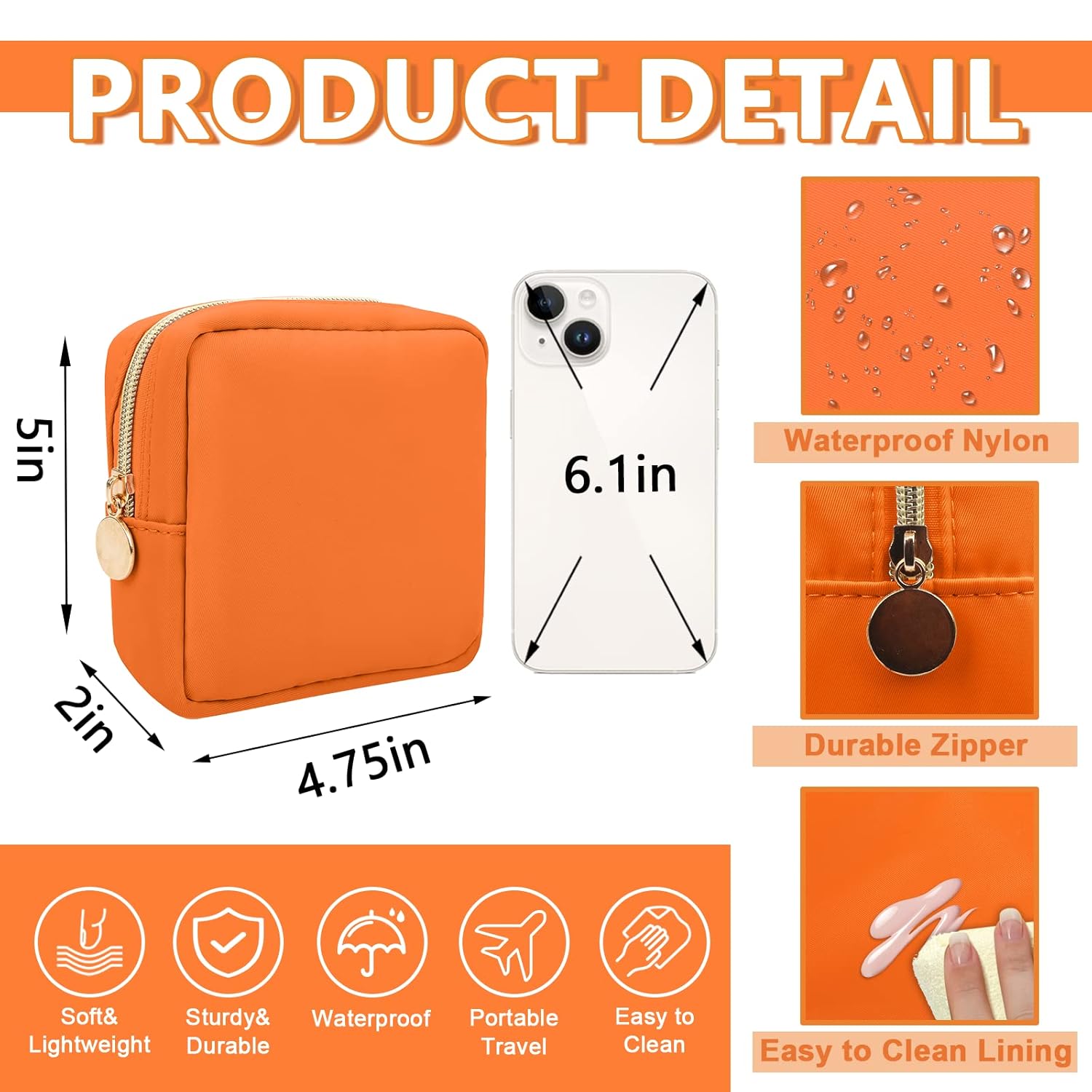 - 【Smooth&Sturdy Zipper】The nylon makeup bag has a metal zipper. The smooth and sturdy zipper is perfect for storing your daily essentials and preventing items from falling out of the bag.The smooth and sturdy zipper zipper allows you to have a good sense of use.