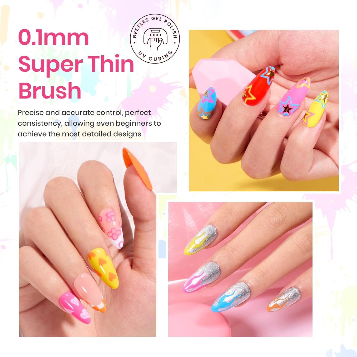 - 【Warm Tips】: Beetles nail art gel required to be cured under an LED Nail lamp for 60-120 seconds to keep your nail art good flexible, strong adhesion and long lasting. If you have any questions, please dont hesitate to contact us.
