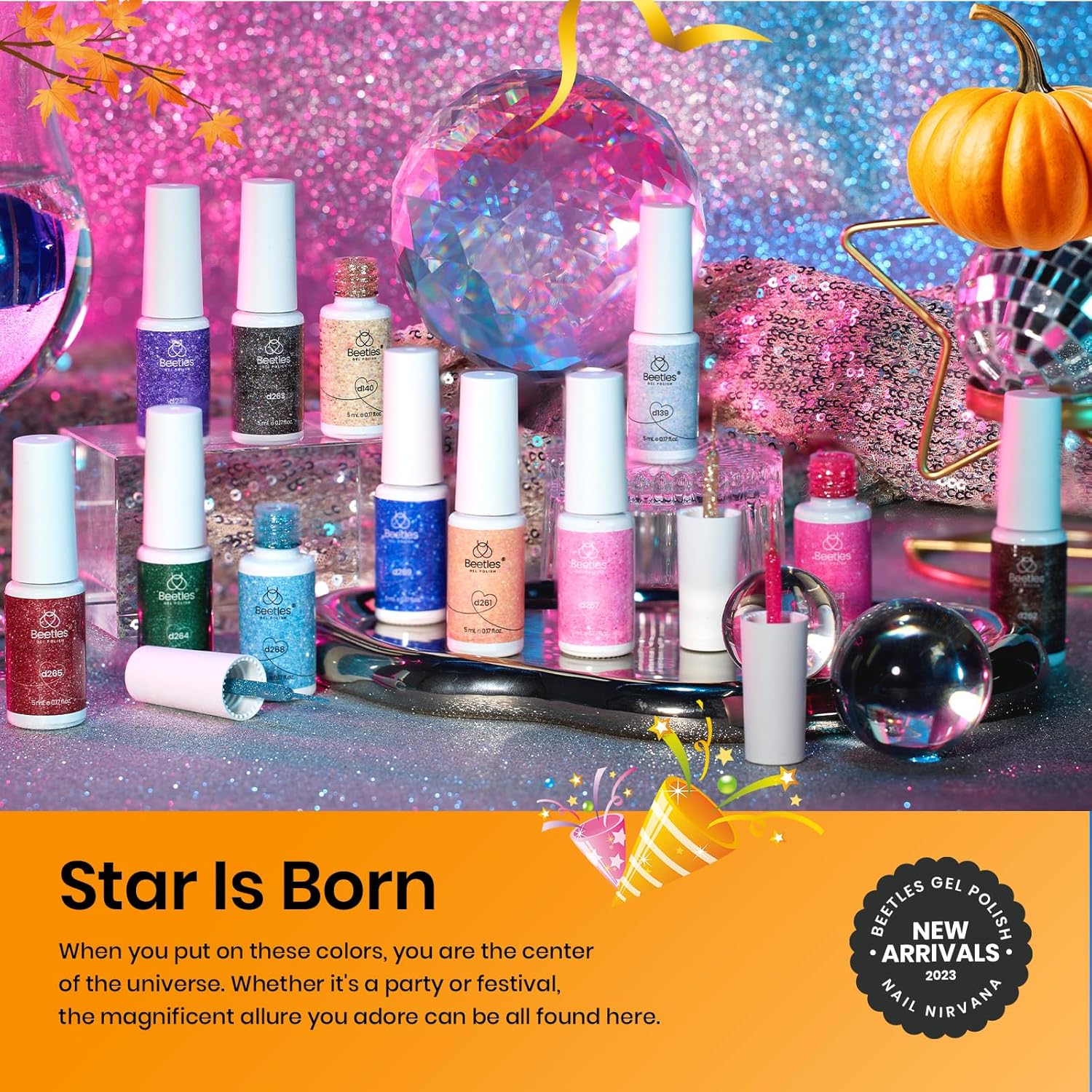 - 【28 days Long Lasting】: Enjoy using beetles hot pink sliver gold brown red reflective glitter gel fall nail polish for manicure and nail art design. Base coat and Top coat are required. Average for LED nail lamp 60-120 secs. Glossy and Vibrant colors last for 28+ days. ( Application: Just make sure you wipe your brush otherwise you’ll get a big drop. THIS IS GEL POLISH. IT MUST BE CURED USING A LED/UV LAMP.)