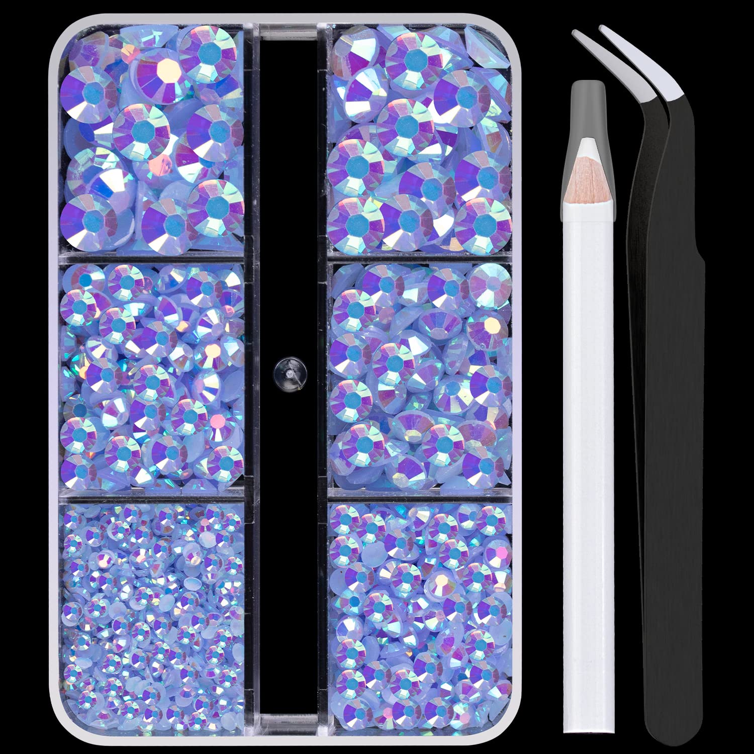 Resin Rhinestones Crafting, 2/3/4/5/6mm Flatback Jelly Rhinestones, 1 Box Sky Blue AB Non Hotfix Crystal Gems for Bedazzling Crafts Mugs Tumblers Clothes Makeup Nail
