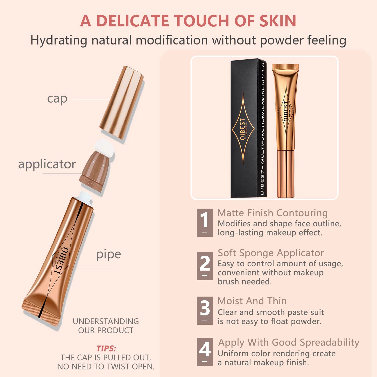- [3 Pcs Blush Liquid Contour Stick Set] Easy, brand-new-to-market cushion applicator to dispense product evenly makes creating gorgeous, sculpted cheekbones easy. The silky formula is easy to blend and buildable for a natural or dramatic look.