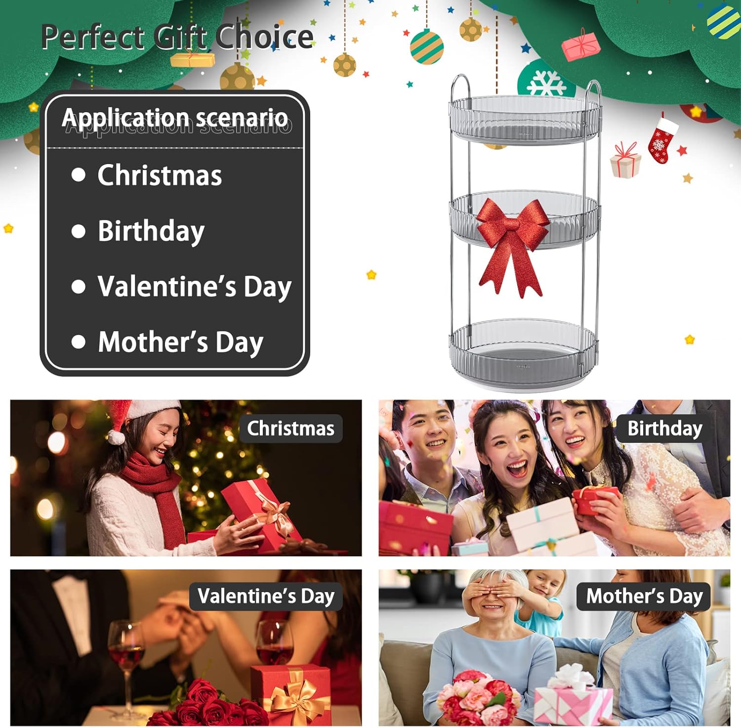 Rotating Makeup Organizer for Vanity, High-Capacity Skincare Clear Make Up Storage Perfume Organizers Cosmetic Dresser Organizer Countertop 360 Spinning (Gray, 3 Tier)