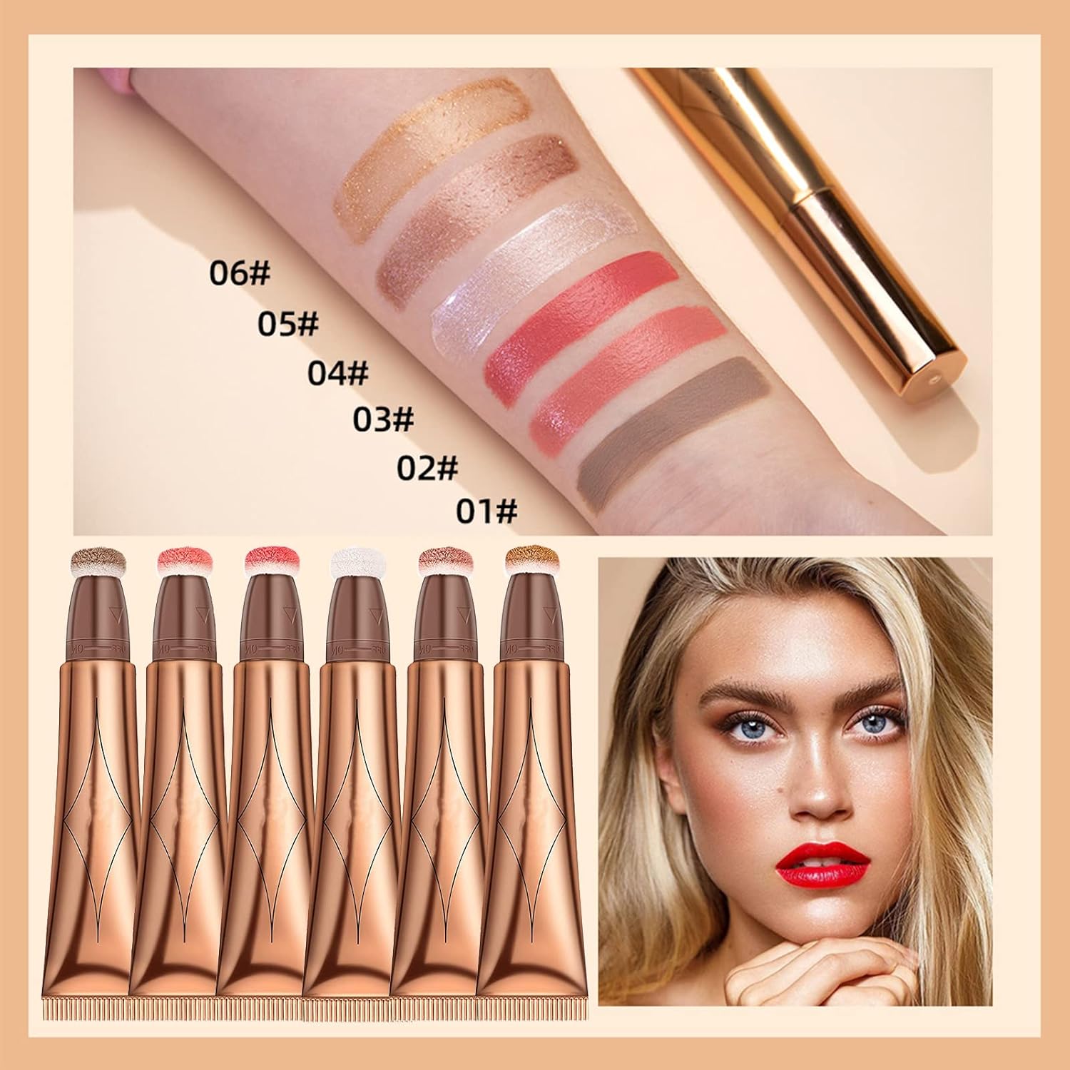 3PCS Body&Face Creamy Contour Beauty Stick,Face Blush Wand with Cushion Applicator,Shimmer Liquid Highlighter Makeup Stick,Long Lasting and Water-resistant Smooth Moisturize Gliding Face Makeup.#136