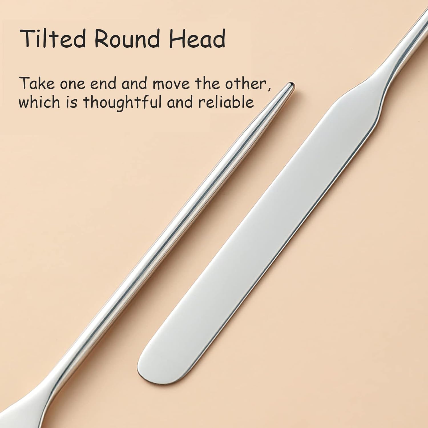 - 【MAKEUP ARTIST MUST HAVES】This stainless steel makeup spatula can be used for mixing foundation to create a right foundation color for you. It is also suitable for blending lipstick or eye shadow, nail art paint, gels, nail polishes, pigment, eyelash glue etc.