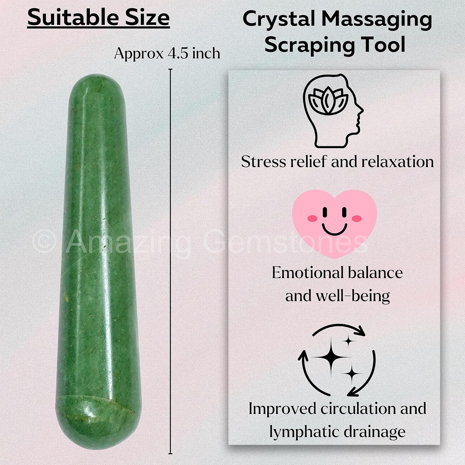Amazing Gemstone Green Aventurine Crystal Wand Massage Stick - Pelvic Wand Gua Sha for Adults - Crystals and Healing Stones Massage Wands for Adults Gifts (Smooth)