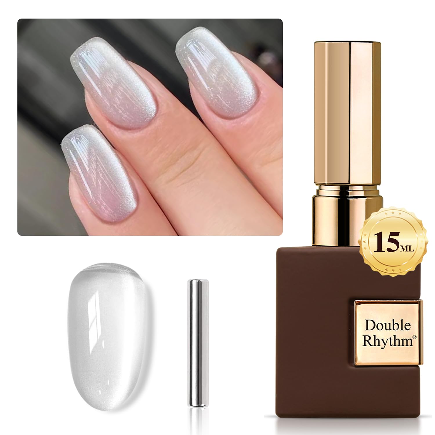 Double Rhythm 0.5 OZ Cat Eye Gel Polish with Magnet 15ML Holographic Glitter Shimmer Translucent Jelly Color Magnetic Nail Polish Salon DIY at Home (MC1031)
