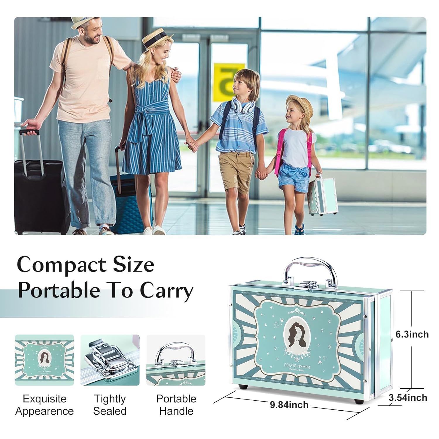 - Green Train Case Makeup Kit: Fresh and energetic style, Light makeup color and best for some outdoor activities,such as picnic,cycling and camping etc.