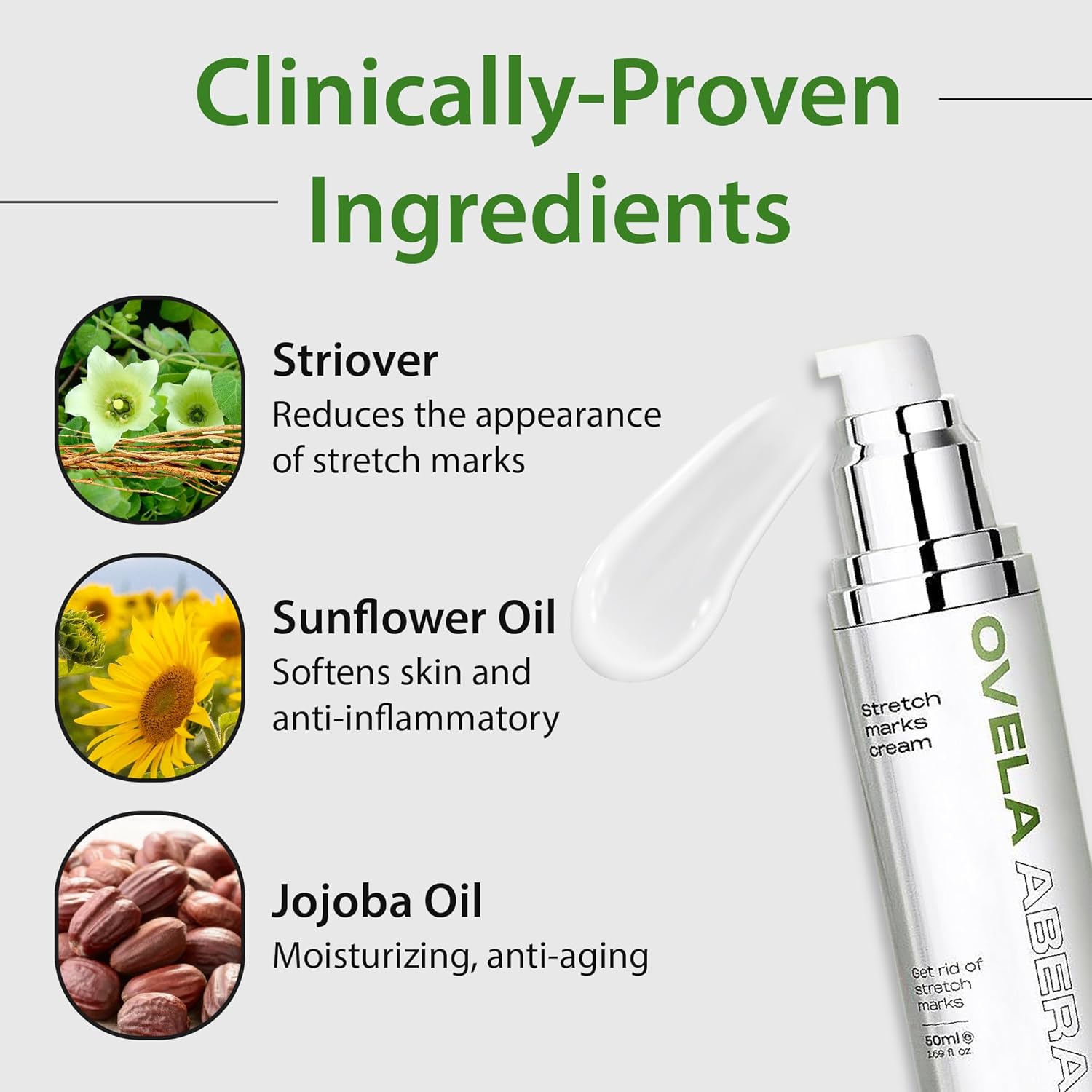 Abera Ovela Maternity Stretch Mark Cream for Pregnancy and Weight Fluctuations, Stretch Mark Treatment Pregnancy Must Haves, Deep Stretch Mark Removal, All Skin Types, 1.69 fl oz, Set of 3