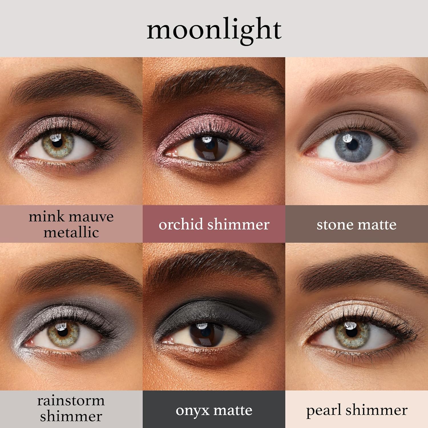 - HIGHLY PIGMENTED EYESHADOW 101 MOONLIGHT LIMITED EDITION 6PC GIFT SET: This special edition Moonlight Collection includes six stunning Eyeshadow 101 shades specially curated for your glamorous and dramatic nighttime and evening looks. It includes Rainstorm Shimmer, a shimmery slate-blue, Pearl Shimmer, a shimmery off-white, Mink Mauve Metallic, a metallic mauve, Orchid Shimmer, a shimmery pink-plum, Stone Matte, matte grey-brown, and Onyx Matte, a matte black.