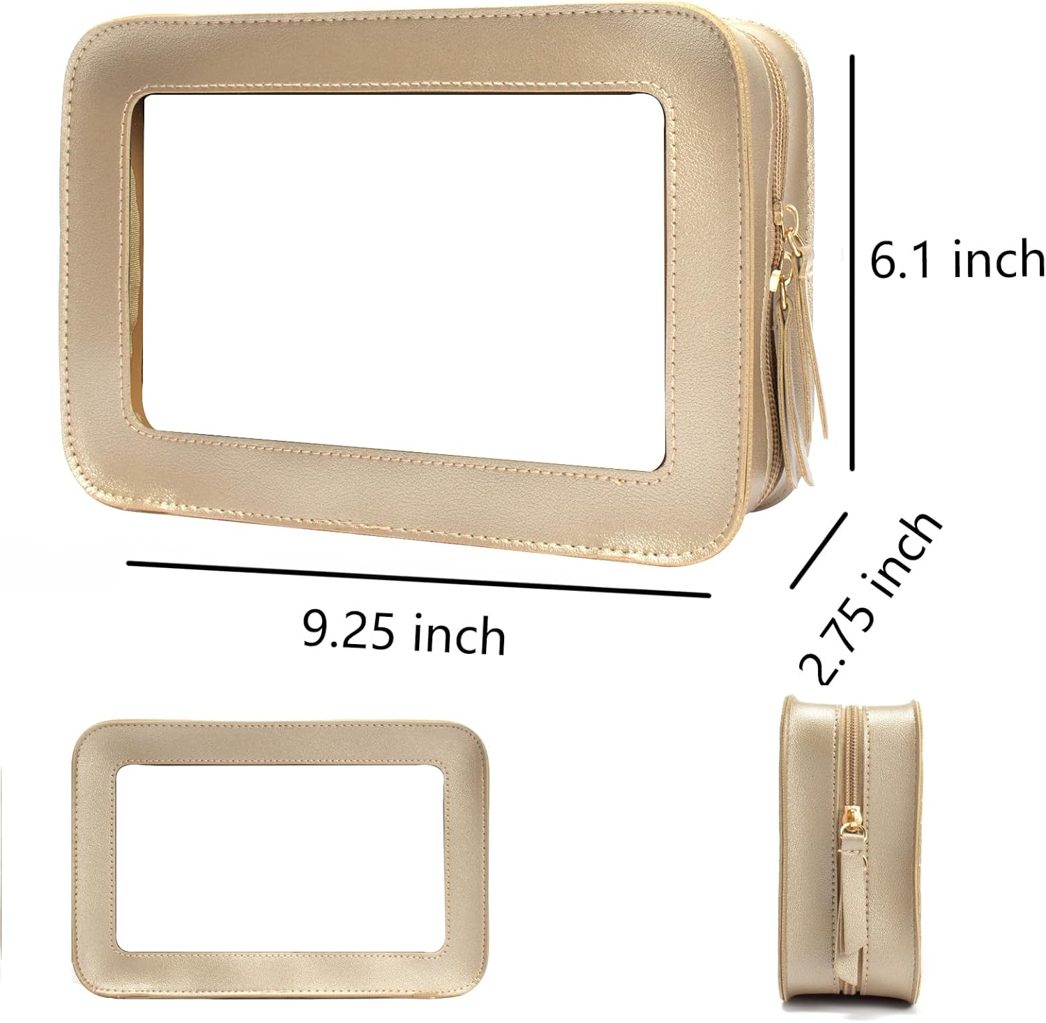 - Clear Design: Our clear toiletry bag is sleek and minimalistic look for your makeup accessories collection. And is designed with a clear PVC window,all items are clear at a glance, and you can quickly choose the cosmetics you need. Size:9.44“*6.1”*2.75“