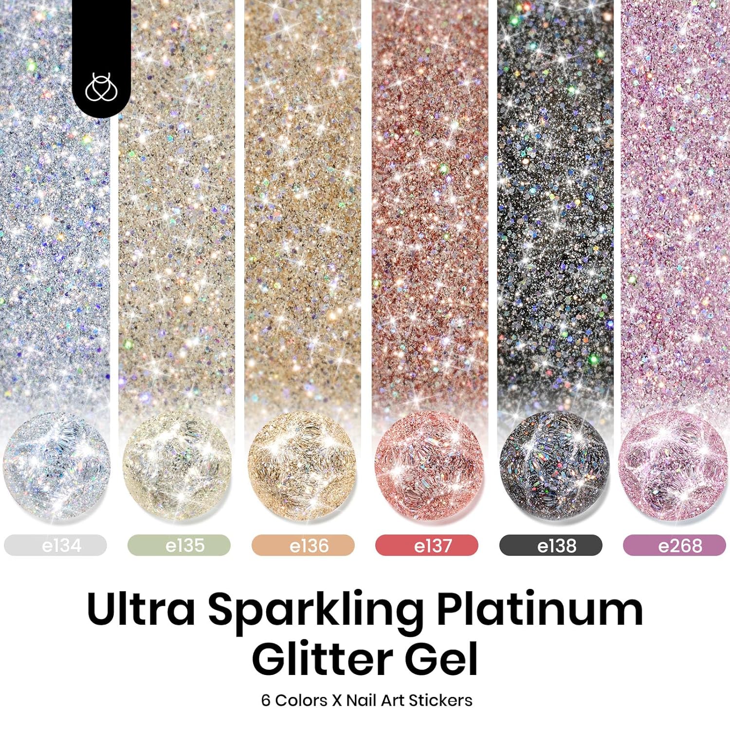 • 6 Diamond Shine Gel Polish: Beetles glitter gel nail polish, sparkly nails shining differently under different lights. Also come with nail art stickers to give you more inspiration. Color Number: e134-e138-e137-e136-e135-e268