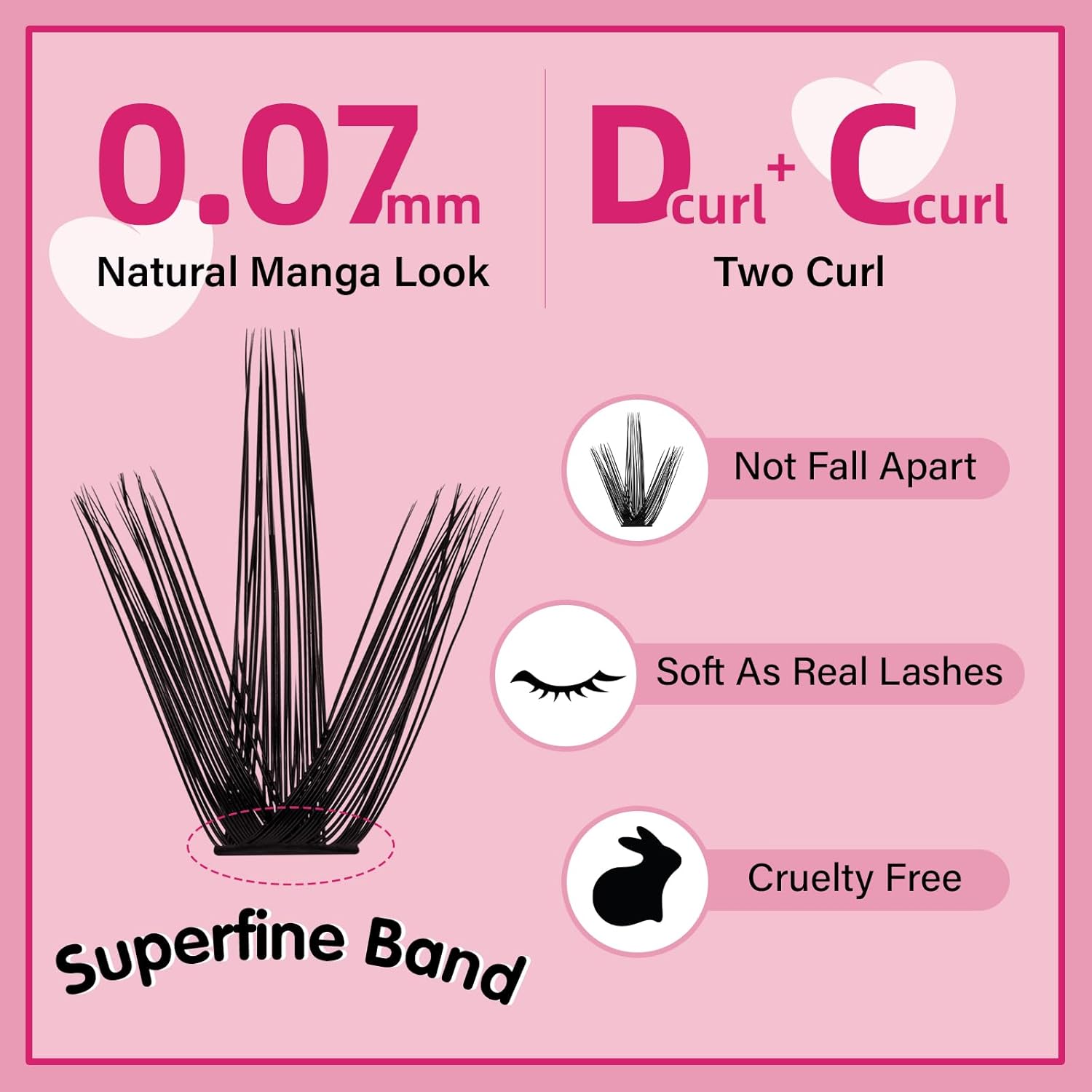 - Natural Like Your Own Lashes: Two different styles of C-curl and D-curl lash clusters and a variety of lash lengths can help you easily achieve a natural or dramatic look. In addition, they can be removed cleanly by the adhesive remover without any worries at all.