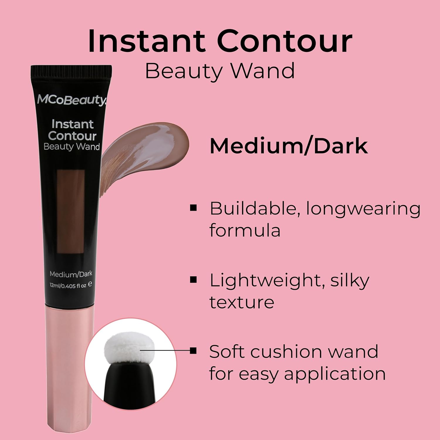 MCoBeauty Instant Contour Beauty Wand, Medium/Dark, Sculpt & Define for a Natural Contour, Vegan, Cruelty Free Cosmetics