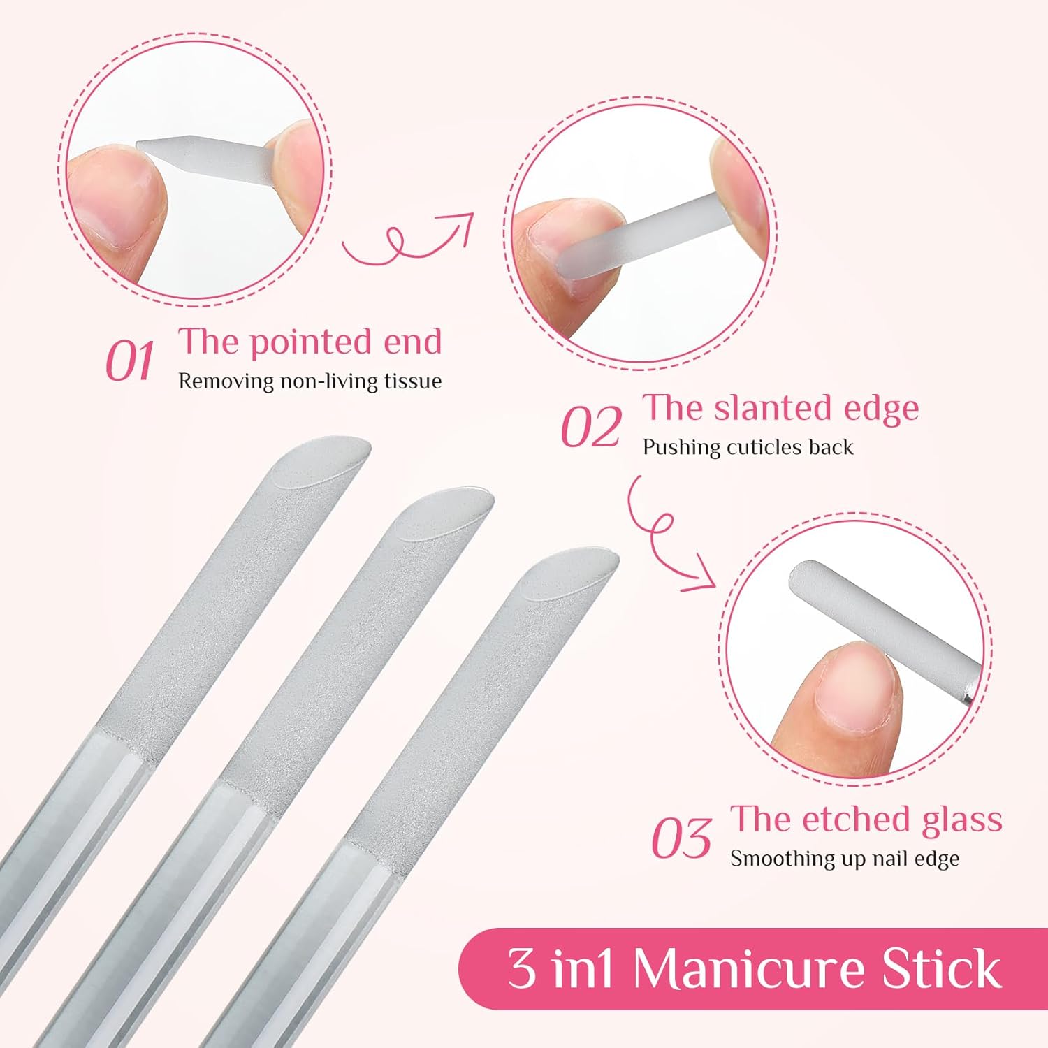 - Glass Material: constructed from glass, these glass cuticle sticks are durable and easy to maintain; The dual ended etched grit board ensures they remain sharp and effective without dulling or rusting, and they are gentle on healthy skin