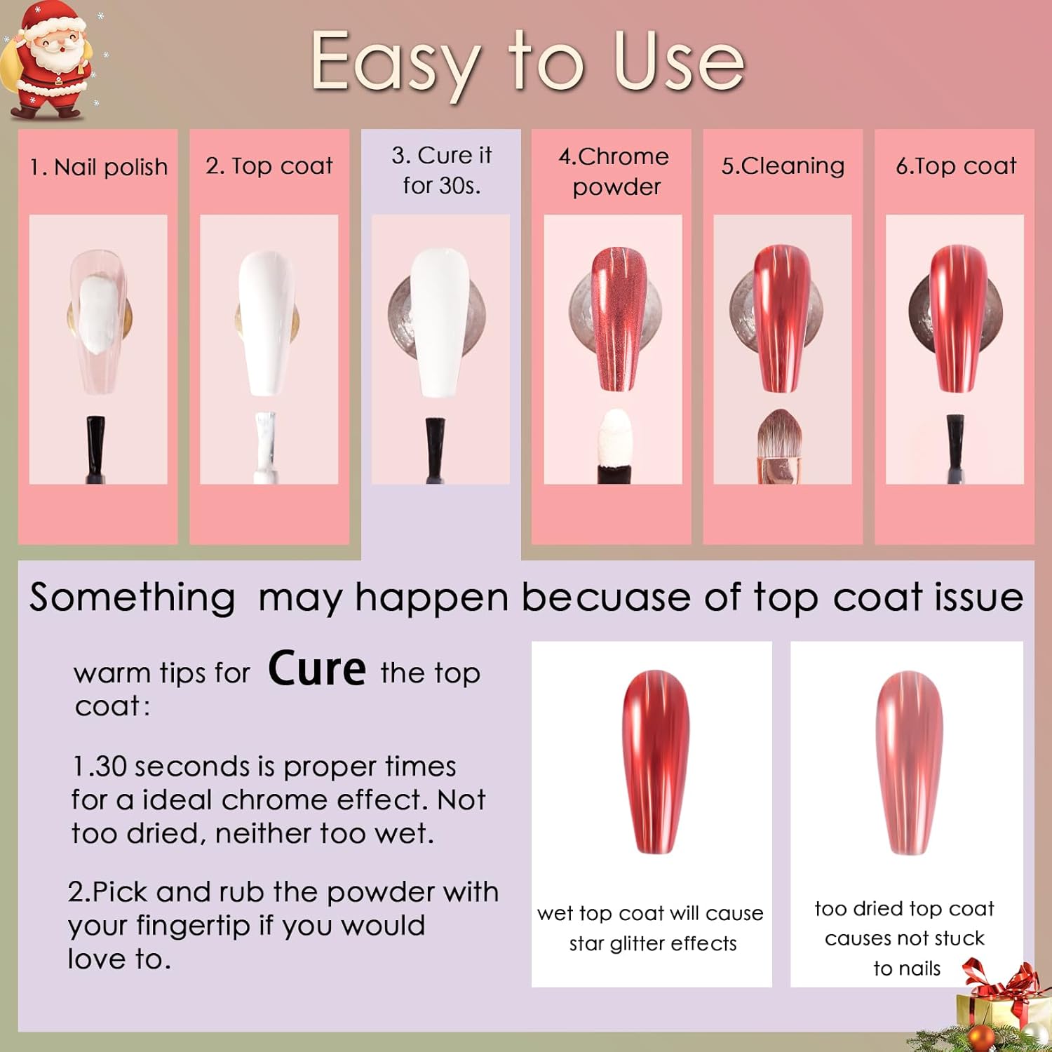 - Multiple Effects: Allstarry Chrome Nail Powder is an ideal pigment powder for valentines day nails that can be used to make sparkling mirror effects, water ripple effects, bubble effects, star effects for your acrylic extensions, gel extensions, and gel polish manicures. Whatβs more, the ultra-fine chrome powder makes the chrome mirror plating effect and holographic effect very significant.