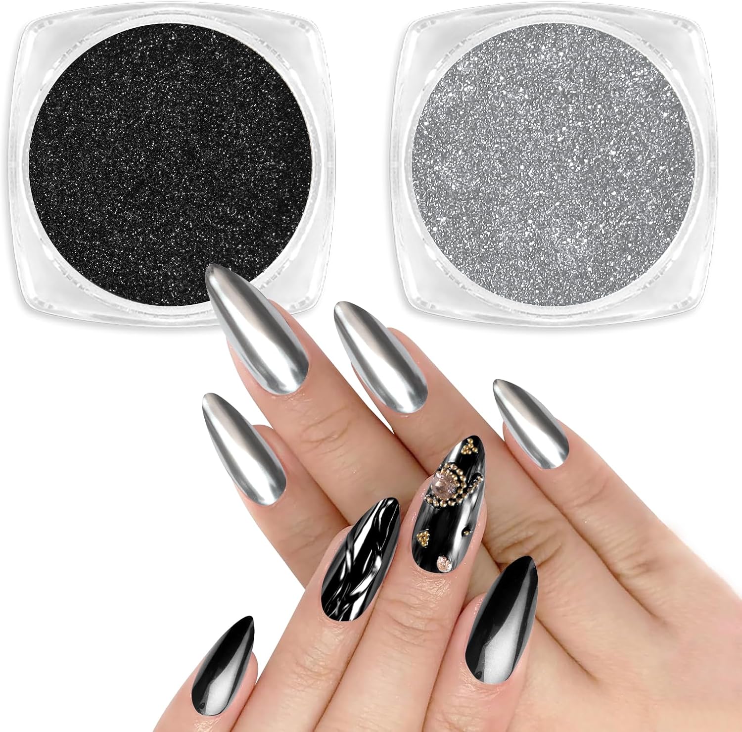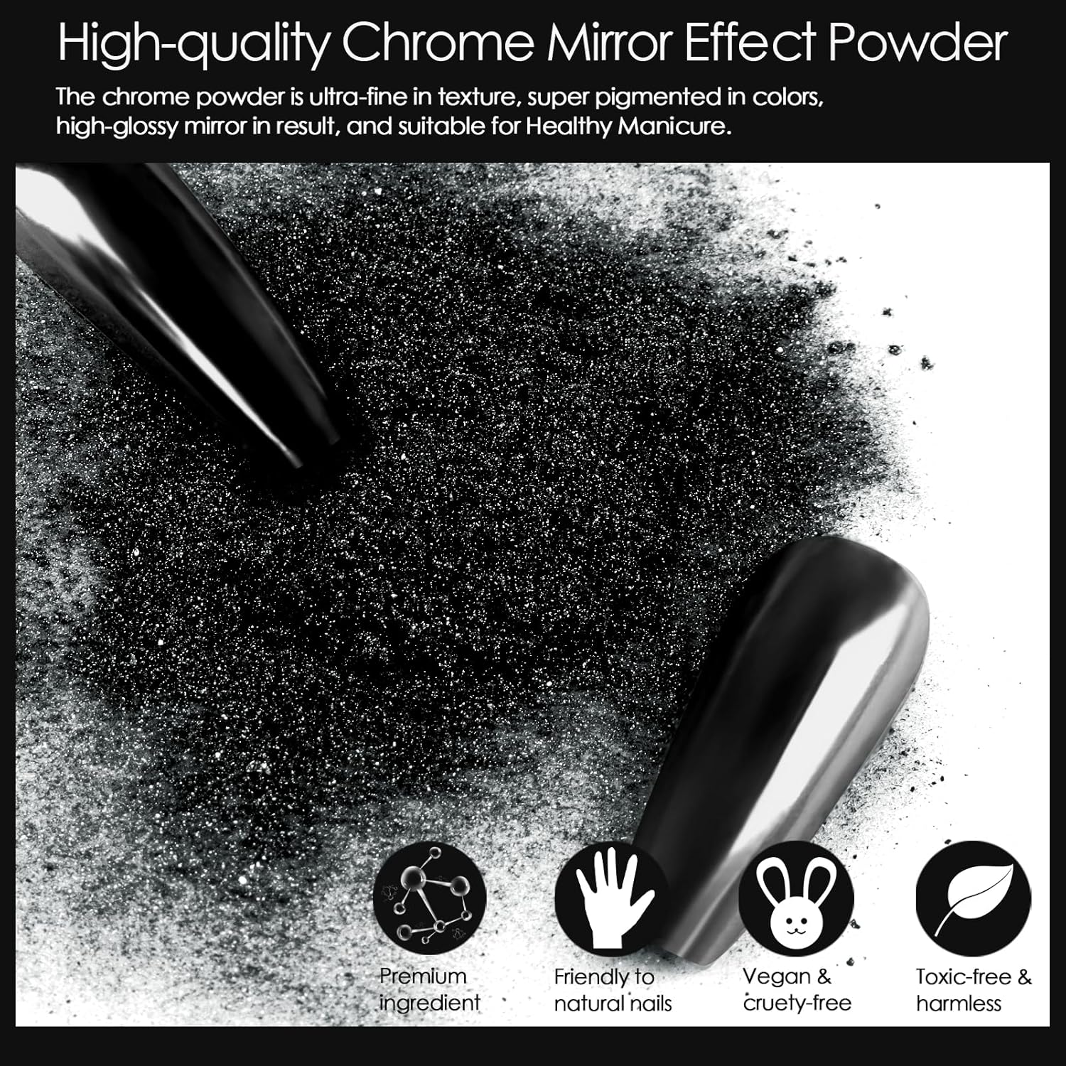 - Wide Usage: Allstarry Chrome Nail Powder Set is with 2 colors, which can perfectly match with chameleon flakes, nail charms, french manicure, 3D shell nails and etc, meeting your needs for different works. Whatβs more, the chrome powder for nails can also be applied on UV gel nails, acrylic nails, natural nails, and it can be mixed into nail gel polish or chrome nail polish for its solvent resistance.