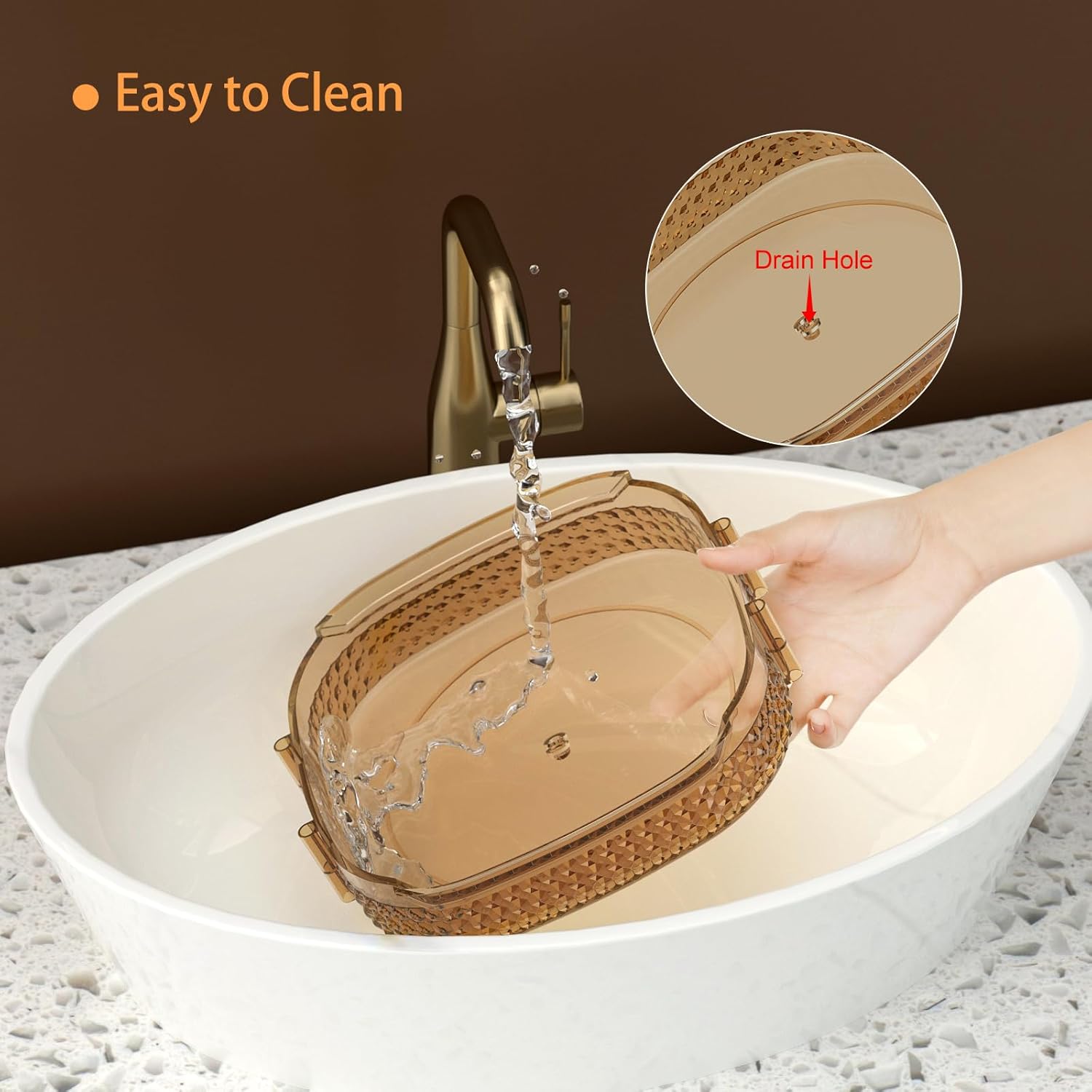 - Stackable &Adjustable:➤The lazy susan organizer is stackable if you get more Awenia clear bathroom countertop organizer and help you save 80% space.With separated top and raise,thicken edges, you can put long brushes,makeup bottle, don’t worry about falling. You can combine three adjustment plates of make up organizers according to your needs.
