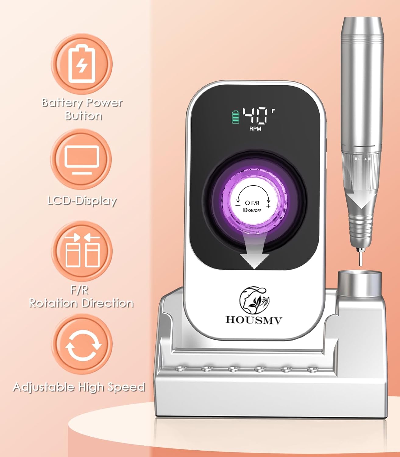 - ššš¬š² šš ššš: The twist-lock system makes changing nail drill bits extremely simple. The cordless electric nail drill also supports forward/reverse direction, allowing easy control for both left-handed and right-handed users, providing a quiet and comfortable nail care experience.