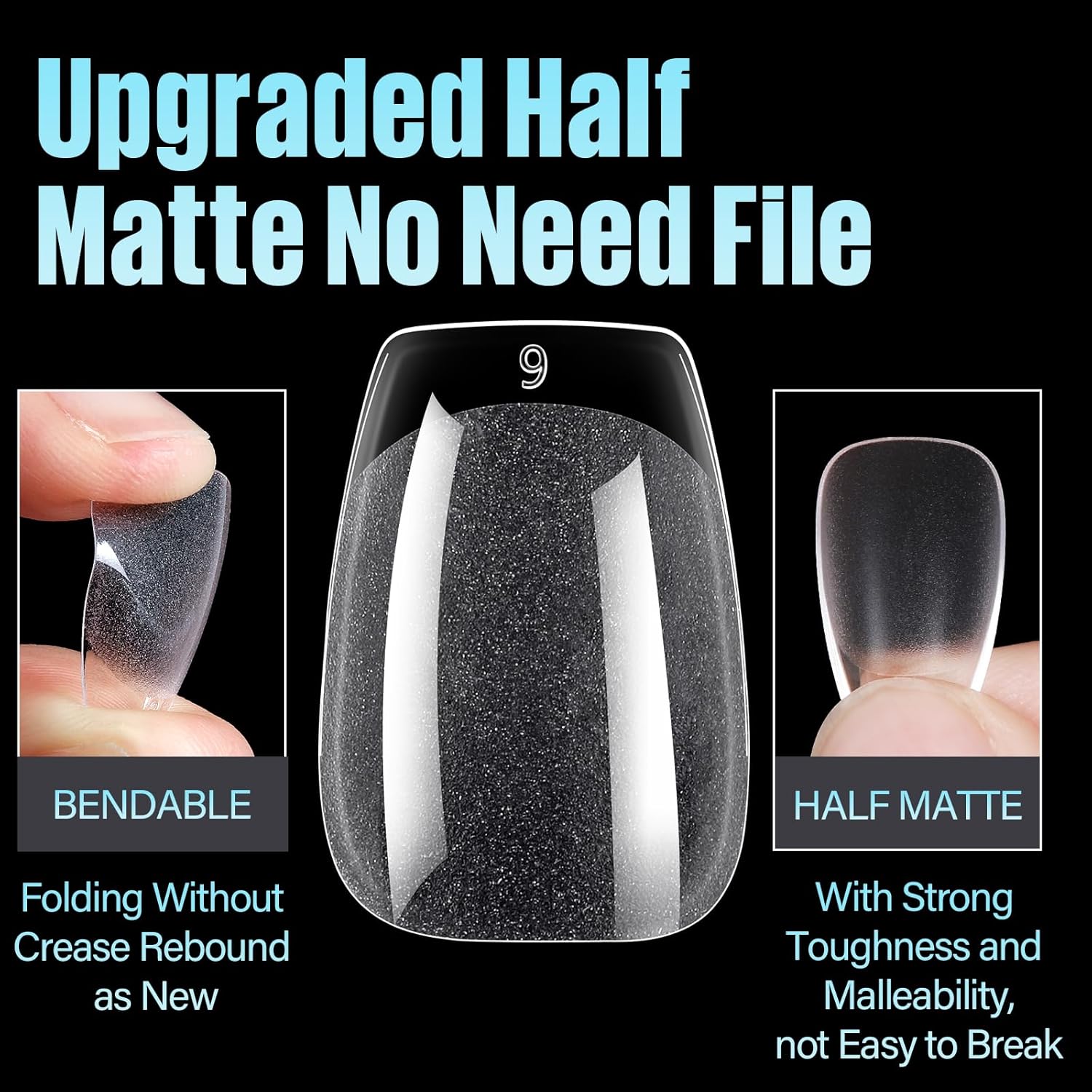 TOMICCA Short Coffin Nail Tips,240Pcs Soft Acrylic Nail Tips Full Cover,Gel Nails Tips Half Matte Press on Nails Clear Fake Nails Extension Tips for Salon DIY 12Sizes