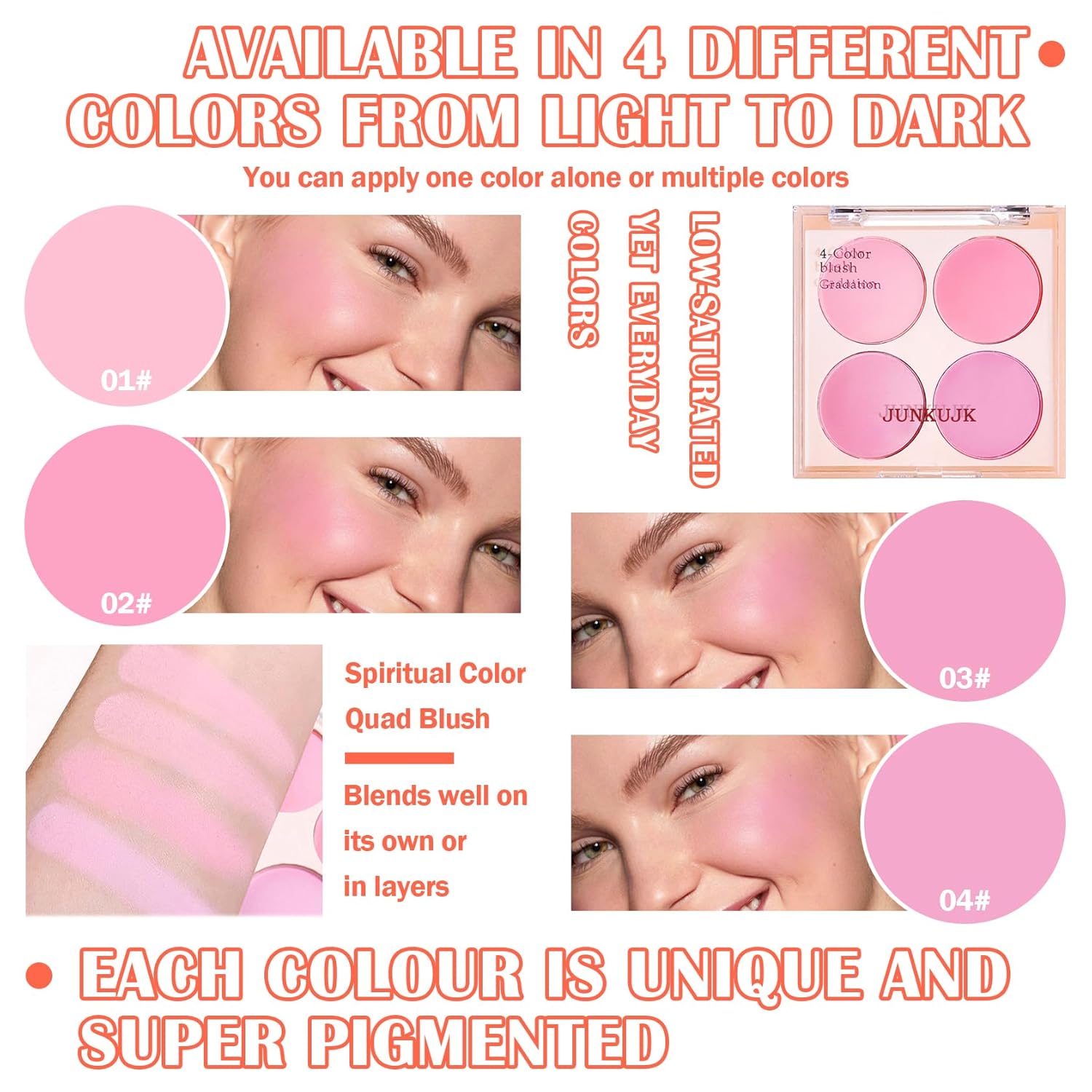 Blush Palette,Shimmer Silky Matte Blush Powder Palette,Professional Cute Face Contour Highlighter Blush Palette with Blush Makeup Brush 02