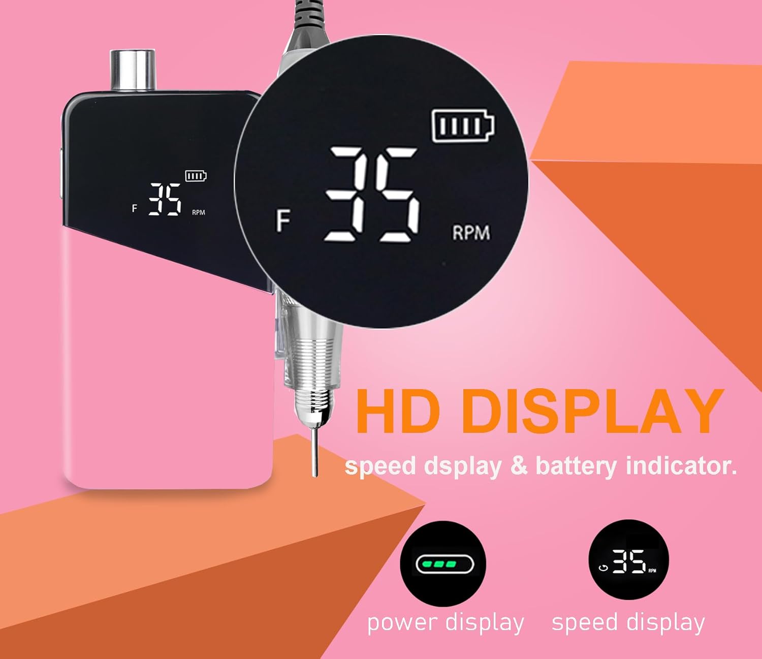 - πΈ High-Speed Performance: Achieve precision with an adjustable speed of up to 35,000 RPM, controlled effortlessly via the rotating knob. Perfect for acrylic nails, gel polish, dip powder, cuticles, and calluses.