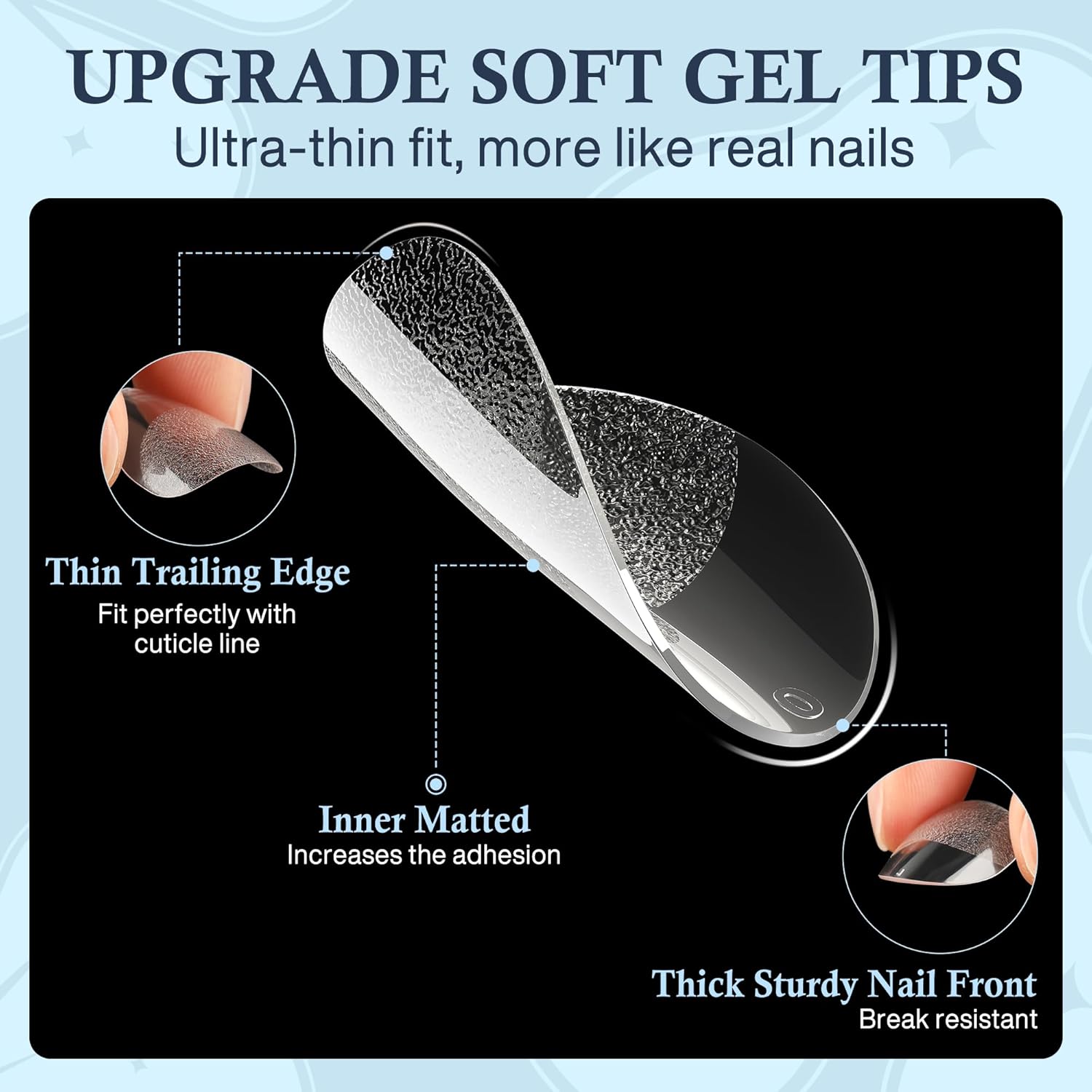 - ❤️ Wide Application: Luckyfairy Soft Gel Tips can be used for gel nail polish, acrylic nails, dip powder nails, poly nail extension gel, nail decorations, etc. Suitable for both DIY at home and professional nail salons.