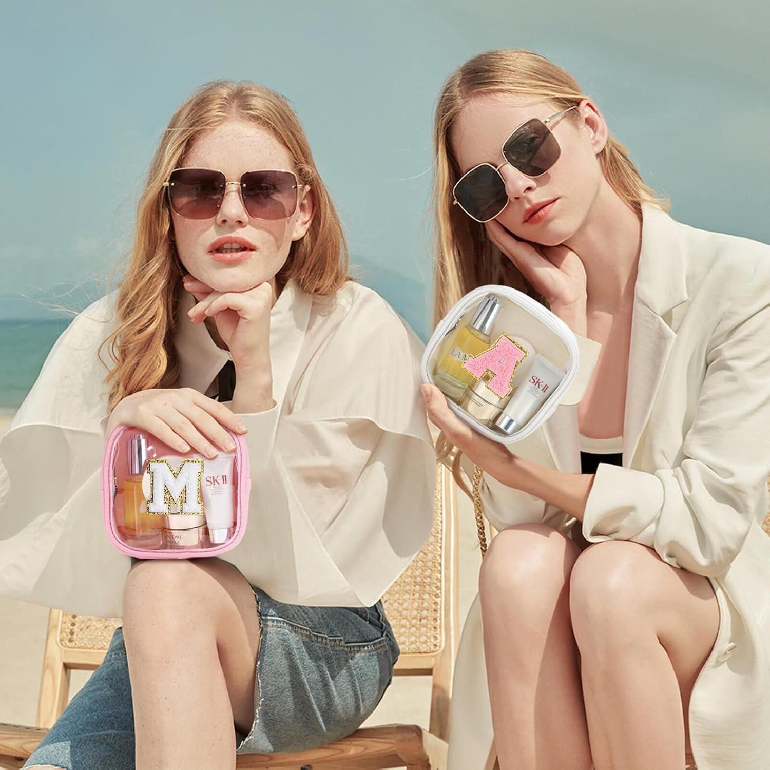 YOOLIFE Initial Make Up Bag Travel Toiletry Bag, Clear Makeup Bag Preppy Cosmetic Bags Organizer Travel Essentials Gifts for Women Teen Girlfriend Teacher Mom Birthday Mothers Day Gifts White L