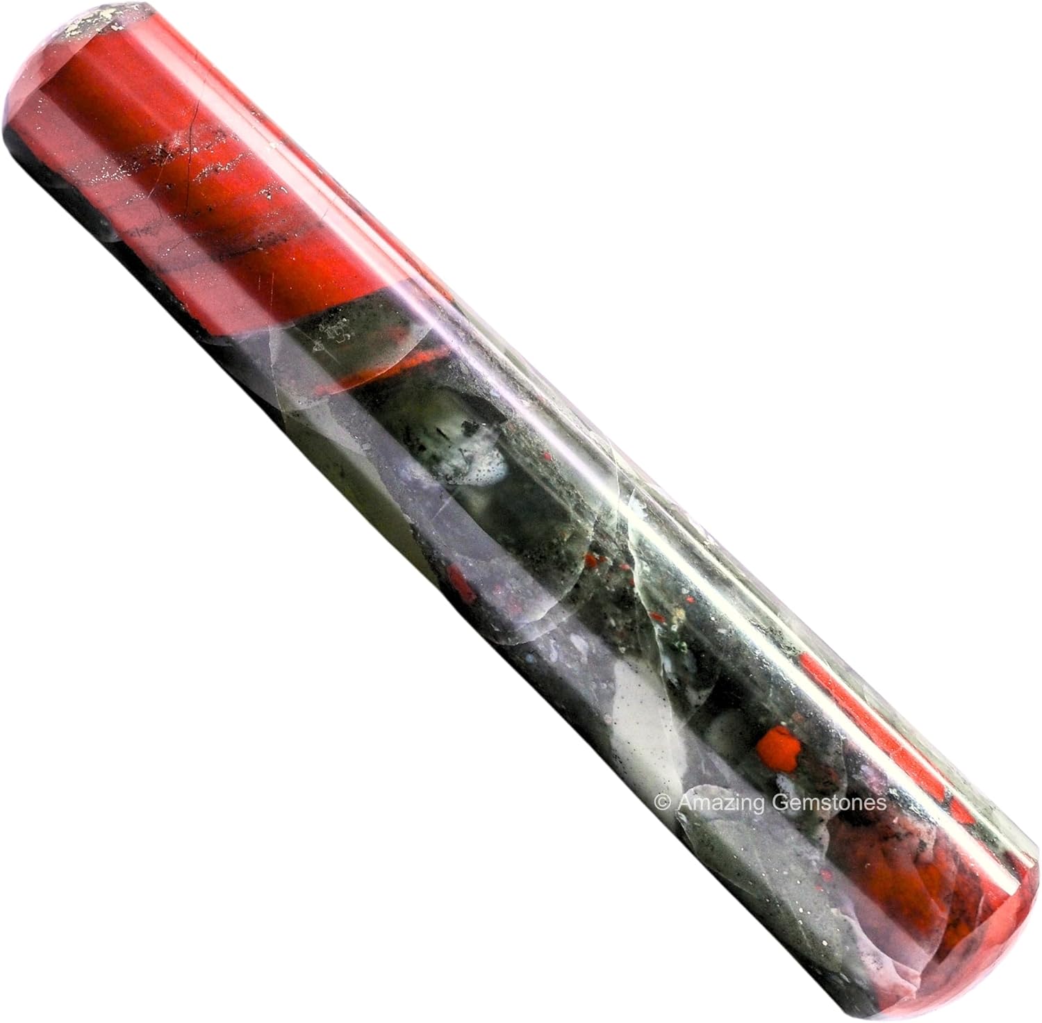 Amazing Gemstone African Bloodstone Crystal Wand Massage Stick - Pelvic Wand Gua Sha for Adults - Crystals and Healing Stones Massage Wands for Adults Gifts (Smooth)