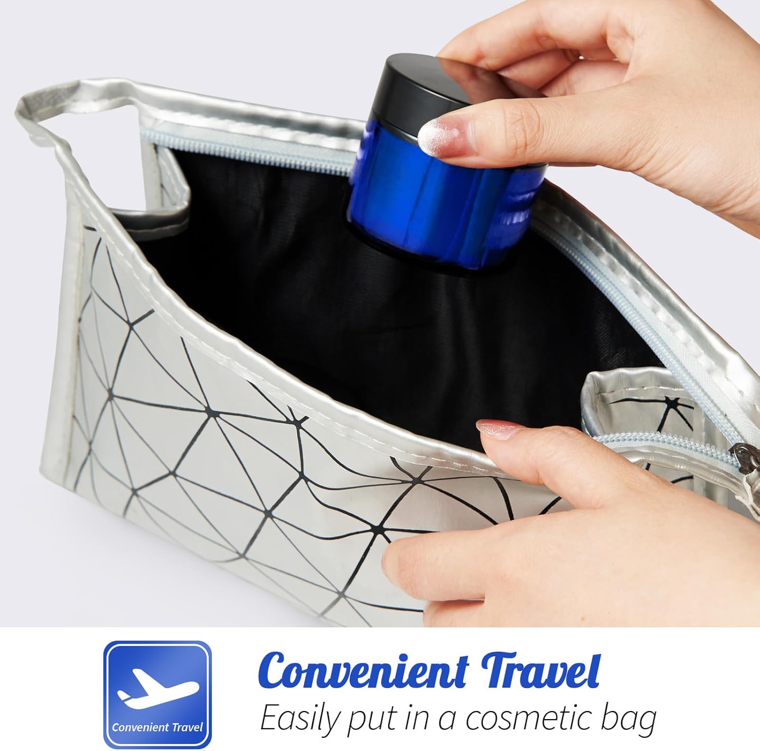 - Airtight Leak Proof: Don't worry about getting your cosmetic bag wet! The blue glass jars came with an Inner liner and the glass jars' tight thread fits perfectly with the glass bottle cap to protect the lotion and essential oil from leaking. Our empty airtight glass jars can be reused to reduce waste
