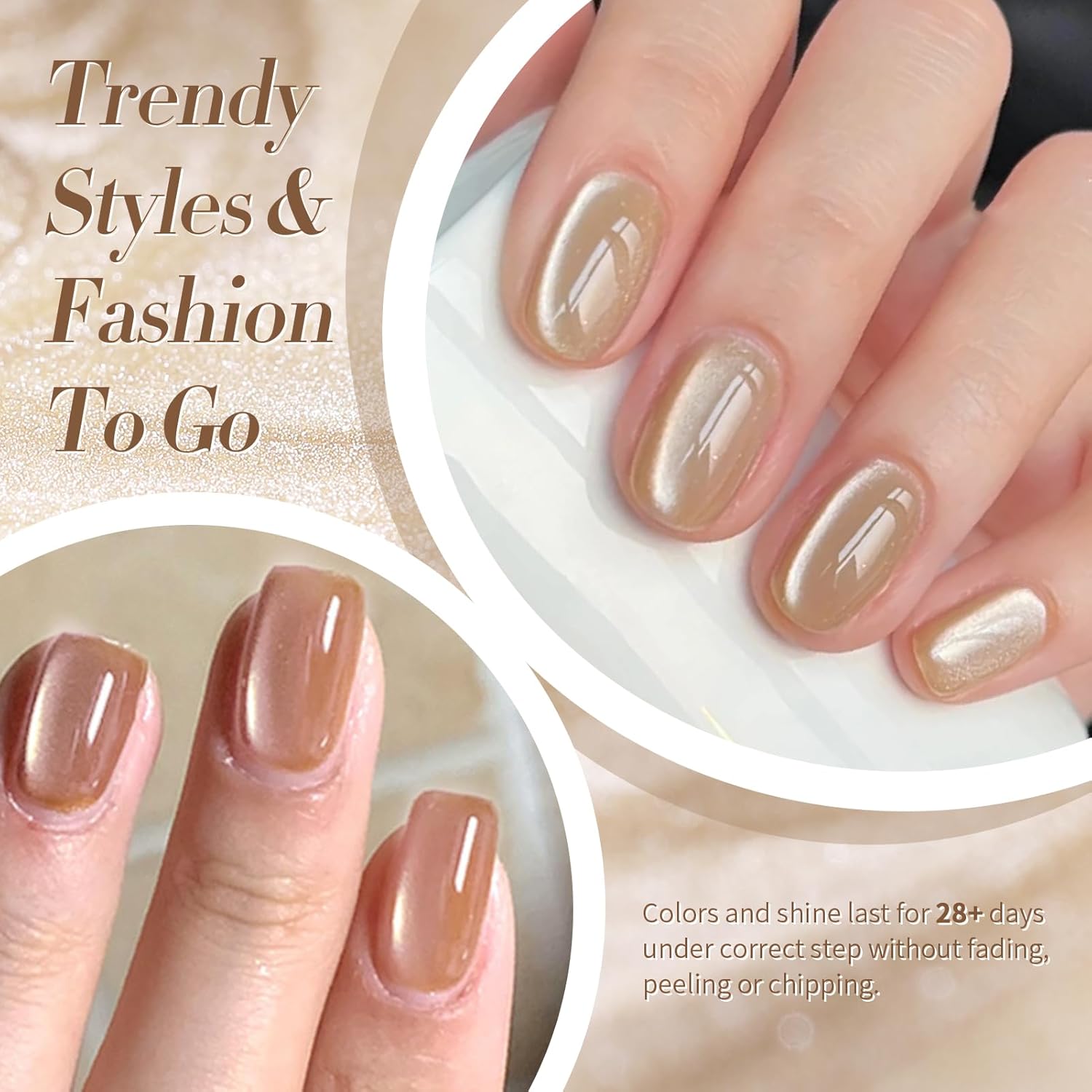 - EASY APPLICATION AND GOOD TENACITY: Cat eye gel nail polish lasts for 28+ days with perfect shine under proper application - With base gel top coat applied throughout the entire process and needing to be cured under LED/UV light for 60-120 seconds.