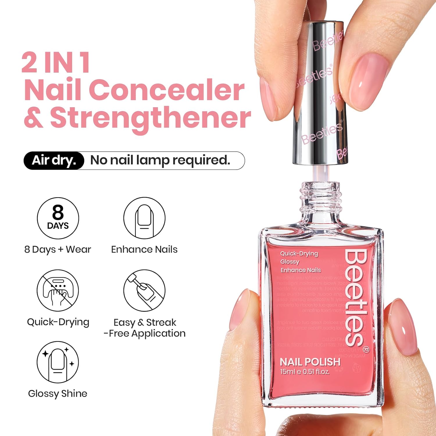 Beetles Nail Strengthener, Jelly Pink Nail Natural Concealer Foundation Polish Sheer Pink Air Dry Nail Growth Polish for Damaged Nails Imperfection Masking Gifts for Women 15ml
