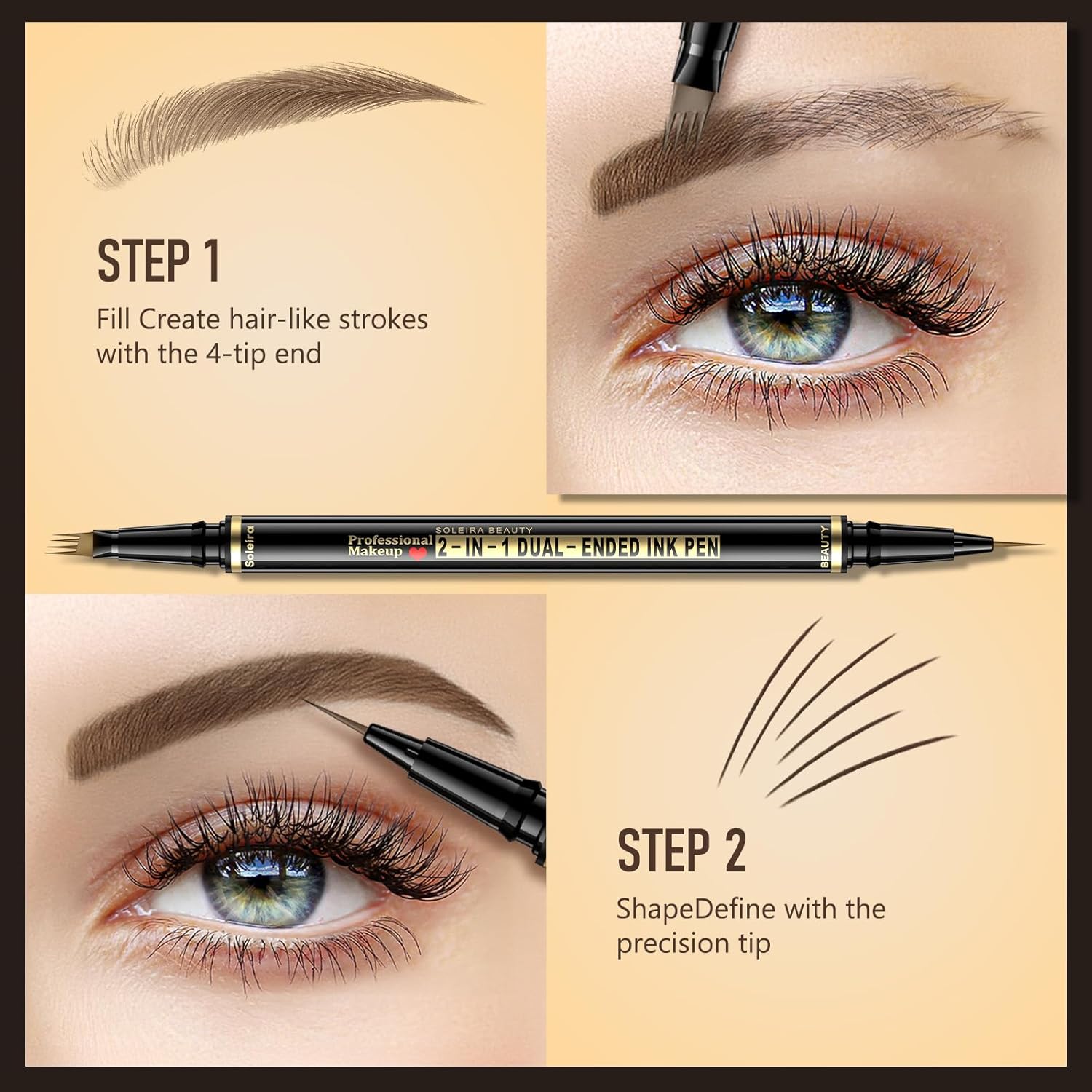 - Dual-Ended Design: This eyebrow kit includes a 4-tip microblading eyebrow pen for natural, hair-like strokes and a single precision tip for shaping. It also comes with a dual-ended brow brushβone end for blending, the other for perfecting finer details. Achieve flawless brows effortlessly