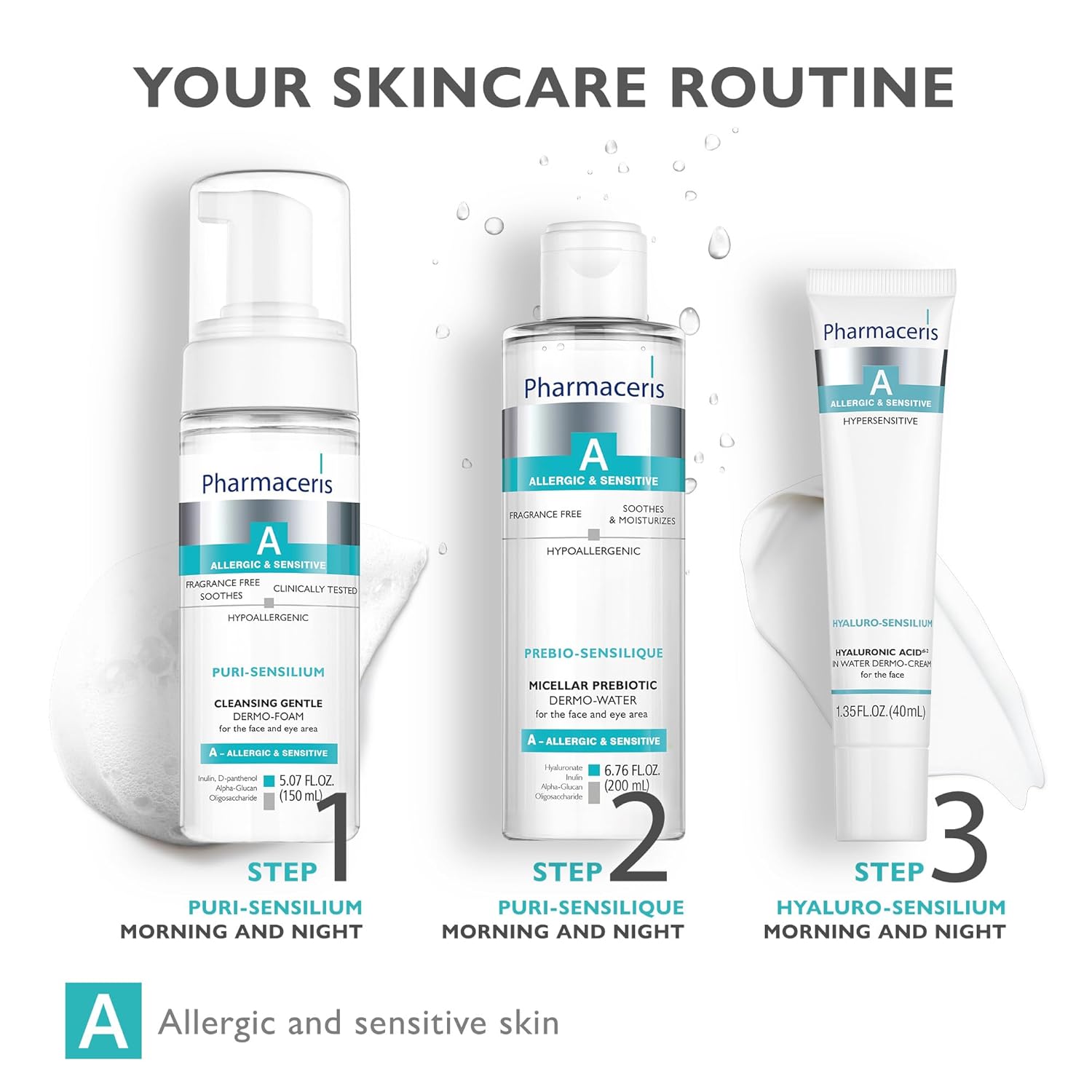 PREBIO-SENSILIQUE Micellar Prebiotic Dermo-Water for Face & Eyes, Removes Makeup & Impurities, Soothes & Moisturizes Allergic & Sensitive Skin, Safe for Contact Lens Wearers, 6.76 fl oz